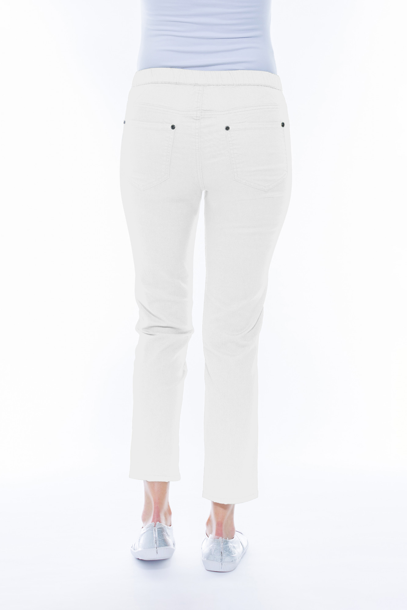 Elevate your everyday wardrobe with these 7/8 pants from Cafe Latte Clothing. Crafted for comfort and style, they feature a pull-on elastic waistband that ensures a smooth, flattering fit without compromising ease of wear. Practical front and back pockets add functionality while maintaining a clean, streamlined look. Subtle stud detailing at the hem brings a touch of contemporary edge and understated sophistication to the design.