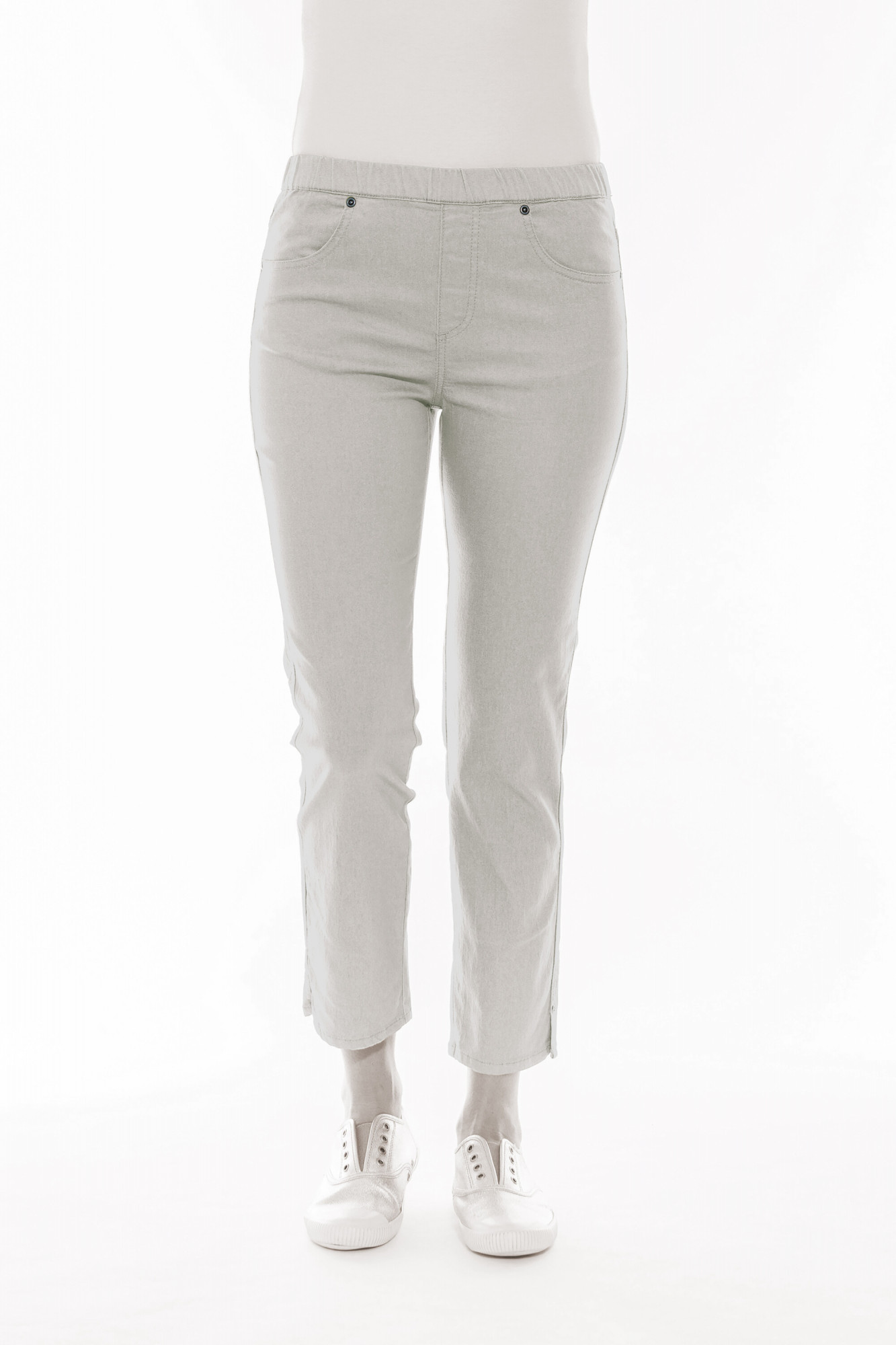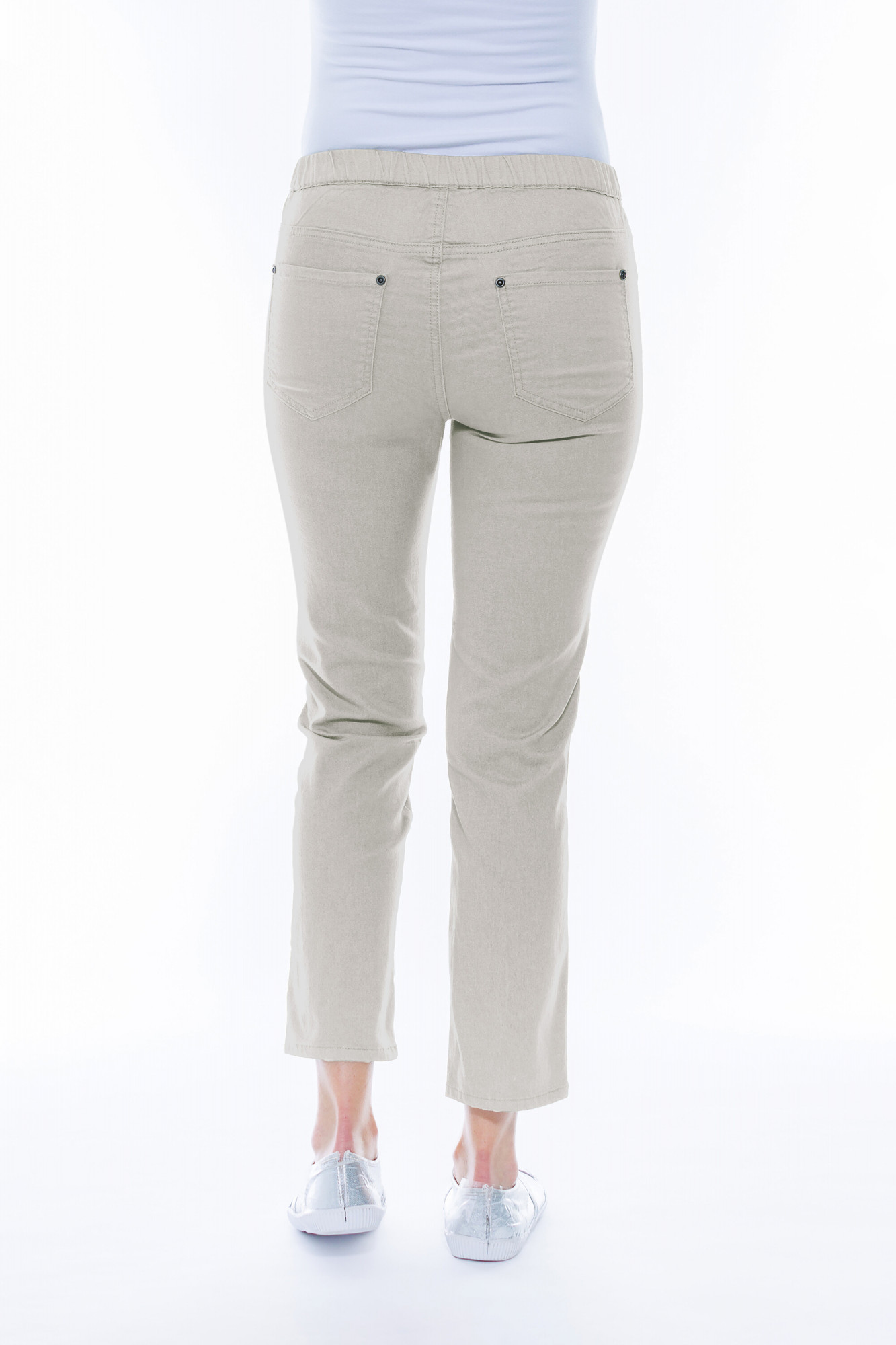 Elevate your everyday wardrobe with these 7/8 pants from Cafe Latte Clothing. Crafted for comfort and style, they feature a pull-on elastic waistband that ensures a smooth, flattering fit without compromising ease of wear. Practical front and back pockets add functionality while maintaining a clean, streamlined look. Subtle stud detailing at the hem brings a touch of contemporary edge and understated sophistication to the design.