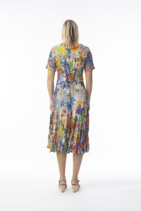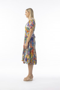 Enhance your summer wardrobe with our gorgeous Godet dress. Made from natural fibres, it features short sleeves, a flattering v-neckline, stunning colourful print, and godet panels through the skirt that create a beautiful drape and swing in the skirt. Ideal for enjoying warm summer days, this dress combines comfort and style effortlessly.