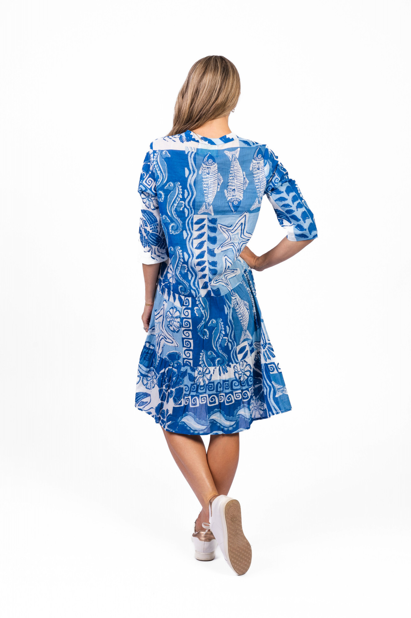 Indulge in summer sophistication with our 100% cotton Beth knee-length dress. Radiating with vibrant colours and captivating patterns, it's a celebration of summertime style. The charming pin tuck detailing adds quality and flair, while the flattering v neckline enhances its glamour with 3/4 sleeves for versatility, this dress effortlessly transitions from sun-soaked days to balmy evenings