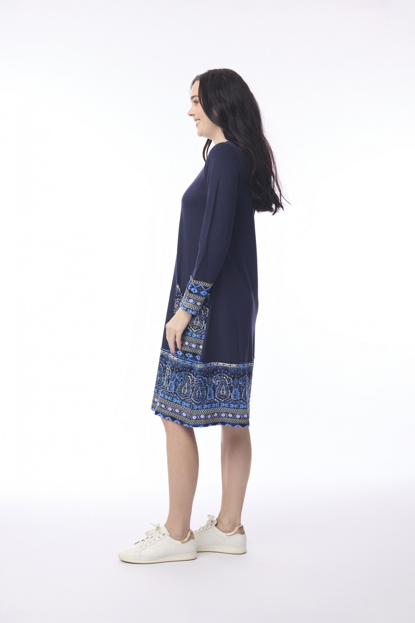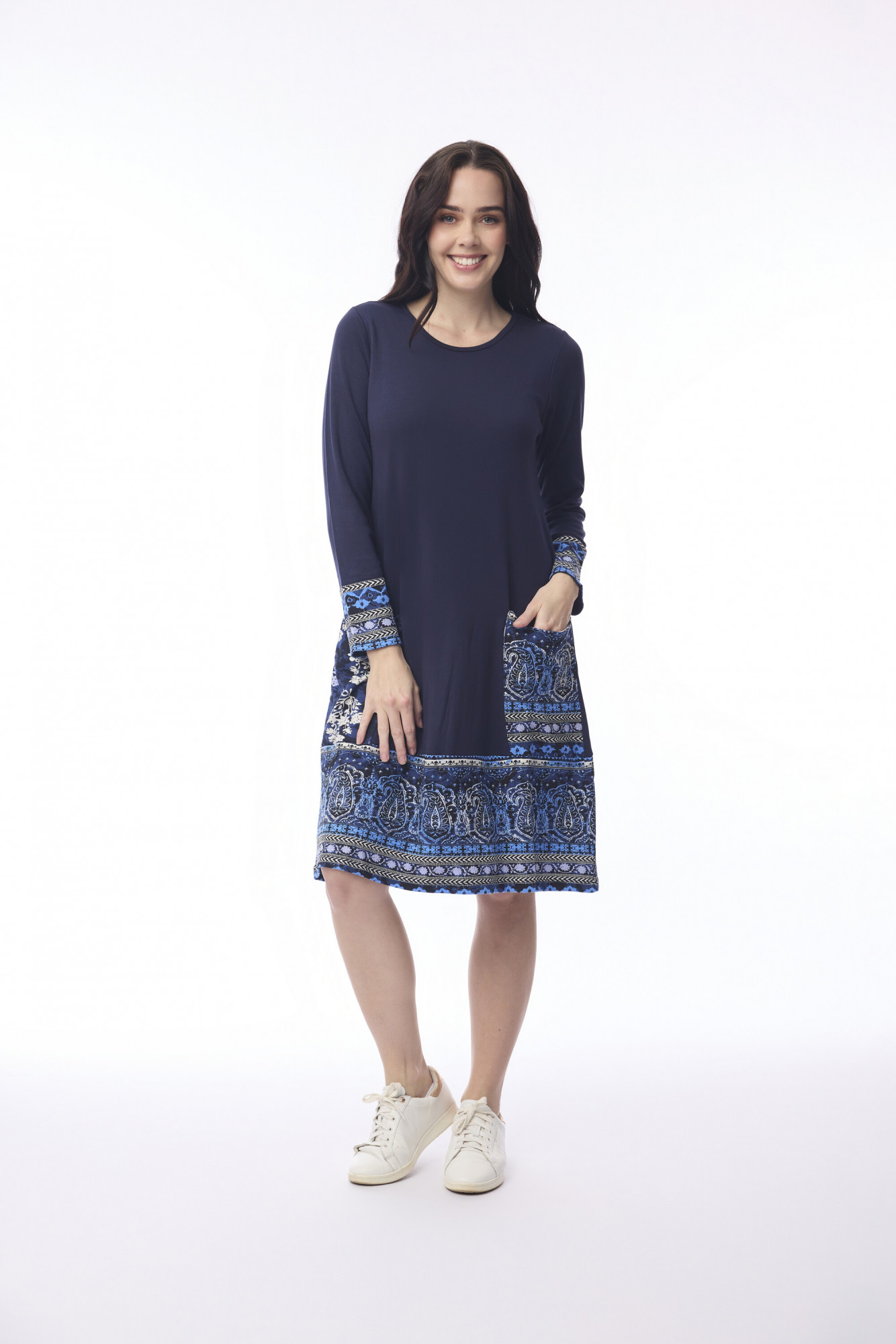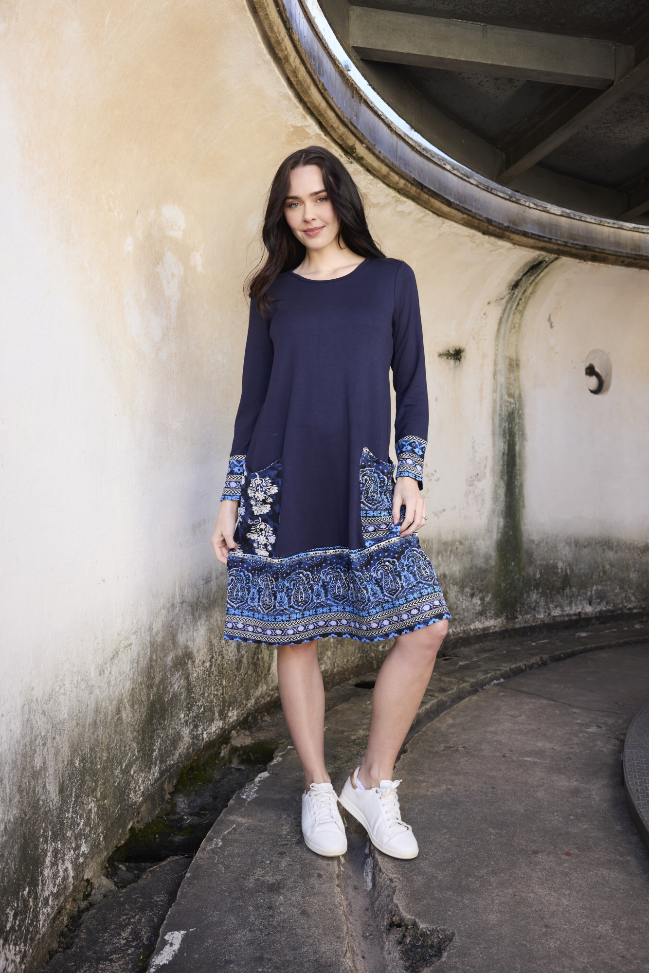 The Bhadoi Dress combines effortless style with everyday comfort in a relaxed shift silhouette. Featuring a classic crew neckline, handy pockets, and playful prints crafted from a soft rayon blend, it’s a versatile piece that’s as practical as it is chic.