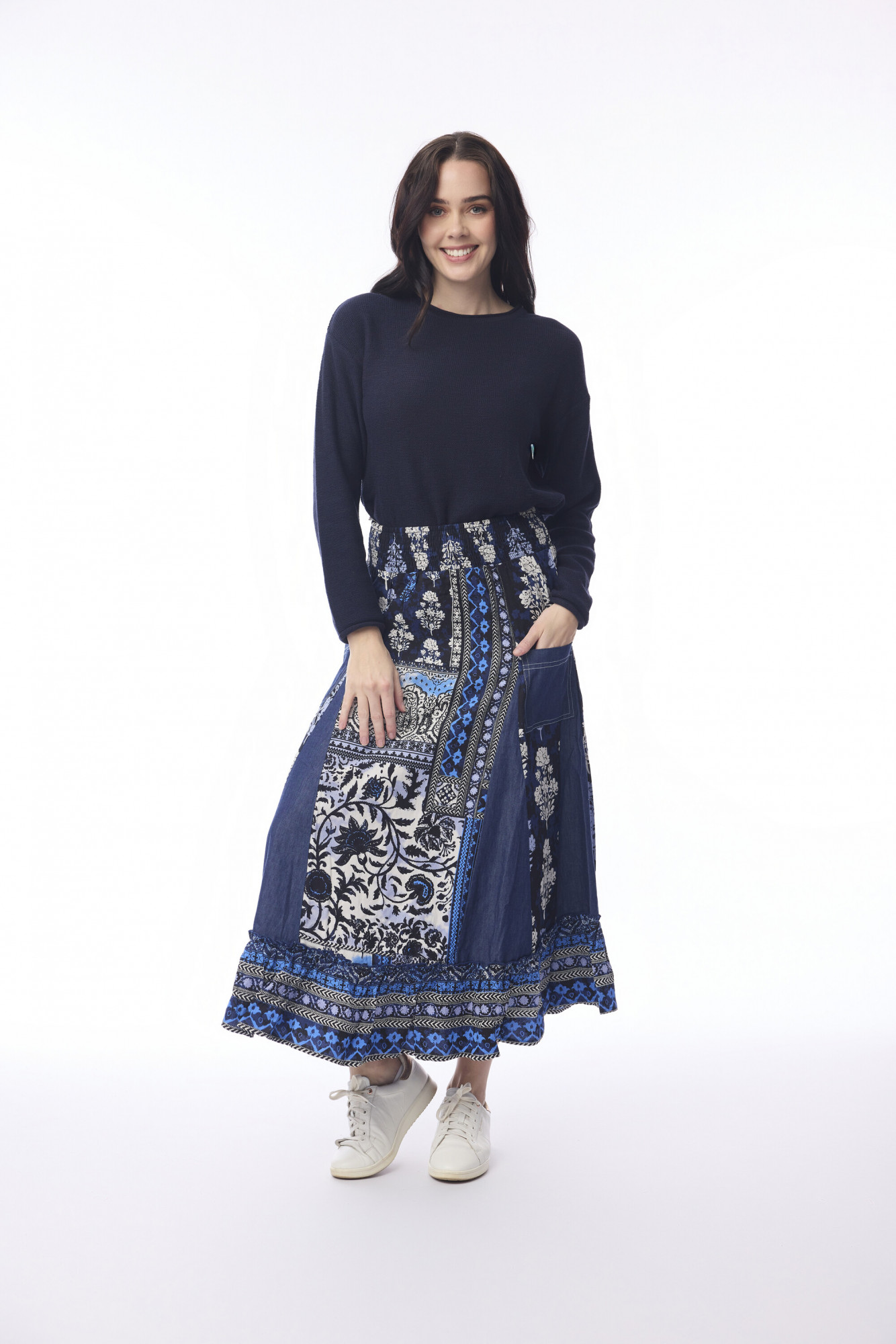 Made from 100% rayon, the Bhadoi Skirt is a bohemian-inspired, midi-length piece designed for effortless style and movement. Featuring a patchwork design of contrasting panels and intricate patterns, it has a comfortable elastic waistband and a playful ruffled hem that adds volume and flow. Lightweight and relaxed, this skirt combines artistic flair with casual elegance, making it ideal for both daytime outings and relaxed evening occasions.