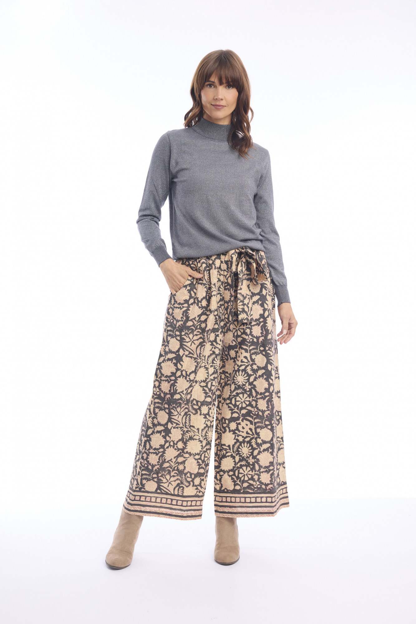 The Block Pant offers a relaxed, wide-leg silhouette with a full length that falls just below the calf. Crafted from 100% cotton, these pants are lightweight and breathable, making them perfect for warm-weather wear. Designed with a matching fabric belt at the waist for an adjustable fit, and finished with functional side pockets for ease, this style blends comfort with effortless style. A contrast border at the hem adds a polished touch to the flowing shape, making these pants versatile for casual days or dressed-up occasions.