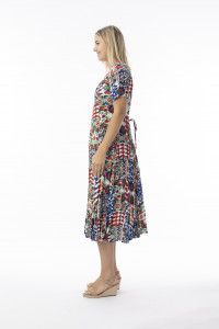 Elevate your beach holiday wardrobe with our colourful and comfortable Godet dress. Made from natural fibres, it features short sleeves, a flattering v-neckline, stunning colourful print, and godet panels through the skirt that create a beautiful drape and swing in the skirt. Ideal for enjoying warm summer days, this dress combines comfort and style effortlessly.