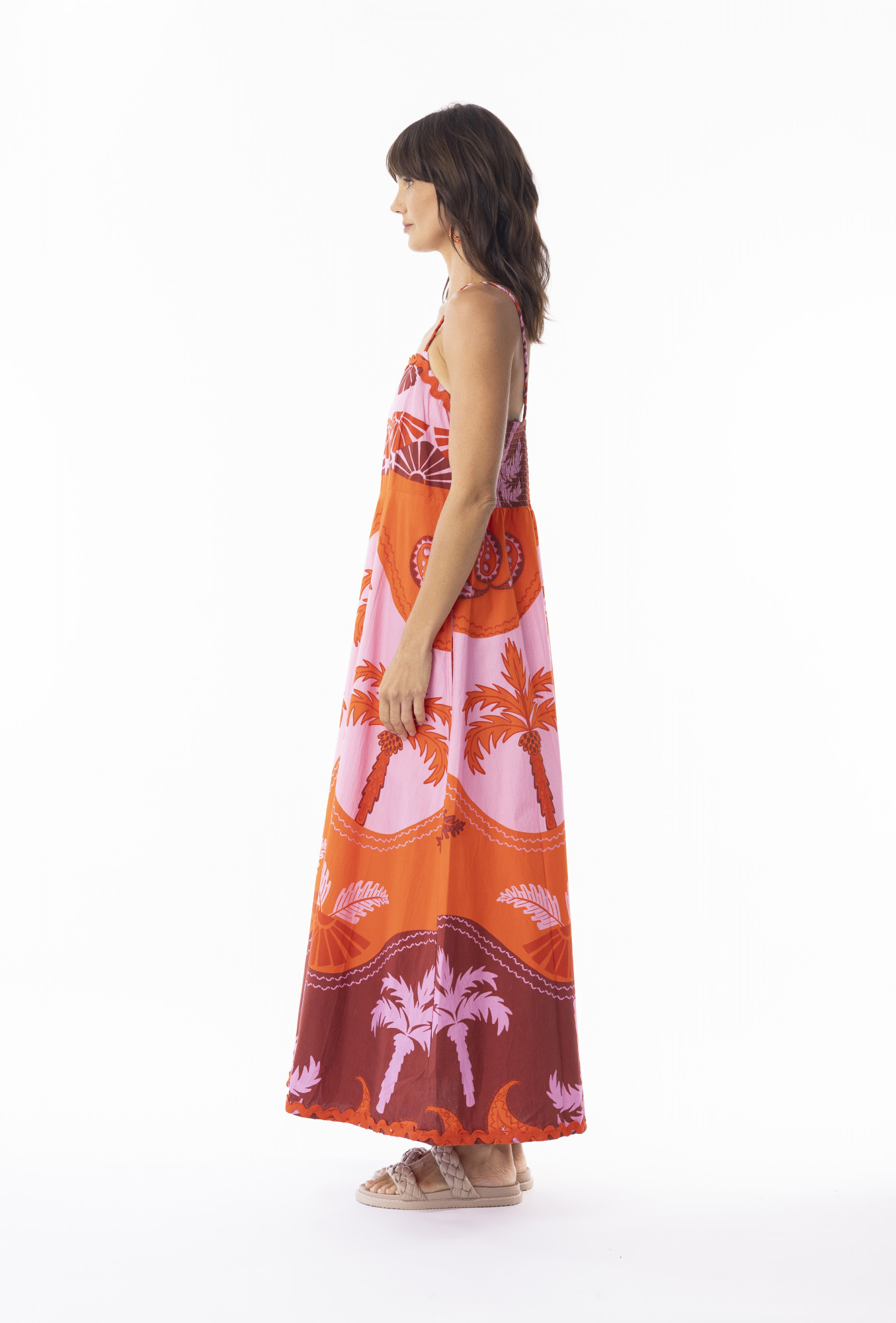 Begin your next chapter with the timeless traveler’s Celeste Orange Strappy Dress. Its flowing silhouette and delicate straps give the dress a playful, airy feel, perfect for sunny days and warm evenings. Whether you're attending a garden party or enjoying a seaside stroll, this dress offers a bold look with its oasis on the Sahara print that is both simple and chic.