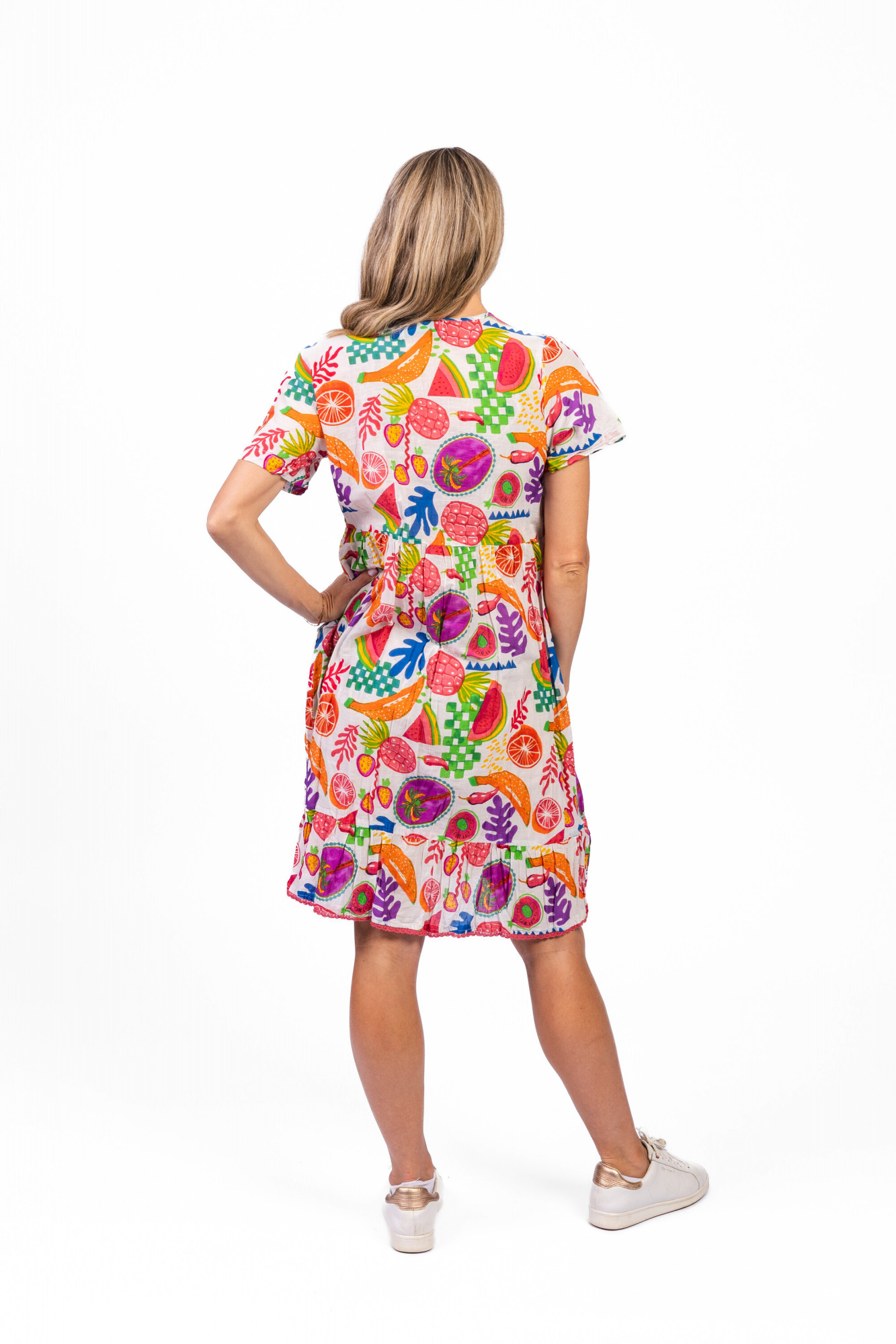 Breezy, elegant, and full of charm — the Colette V-Neck Tassel Dress is a standout piece. Crafted from 100% cotton, this knee-length dress features a flattering V-neckline, delicate tassel ties, and subtle button detailing that adds a hint of sophistication. With short sleeves and a relaxed silhouette, it’s perfect for warm-weather days or easy weekend outings. Style it with sandals or sneakers for a carefree yet polished look