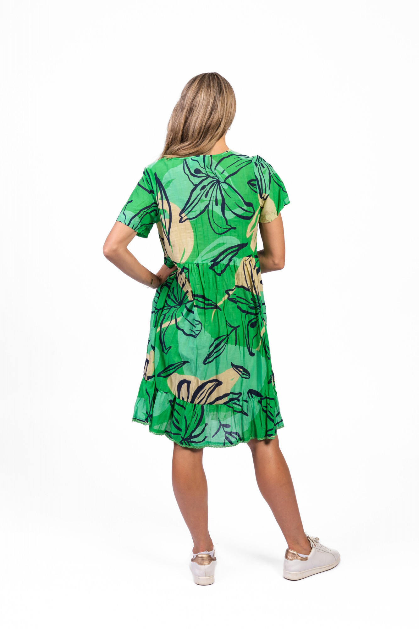 Breezy, elegant, and full of charm — the Colette V-Neck Tassel Dress is a standout piece. Crafted from 100% cotton, this knee-length dress features a flattering V-neckline, delicate tassel ties, and subtle button detailing that adds a hint of sophistication. With short sleeves and a relaxed silhouette, it’s perfect for warm-weather days or easy weekend outings. Style it with sandals or sneakers for a carefree yet polished look