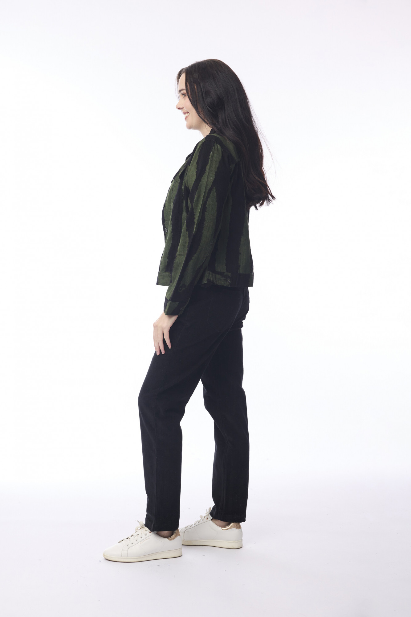 The Congo Biker Jacket is a vibrant update to a timeless silhouette, crafted from 100% cotton corduroy for a soft yet structured feel. Featuring a button-through front and a slightly cropped cut, it creates a flattering, feminine shape with ease. Designed with bold prints and lively colors, this jacket brings playful character and standout style to any outfit.