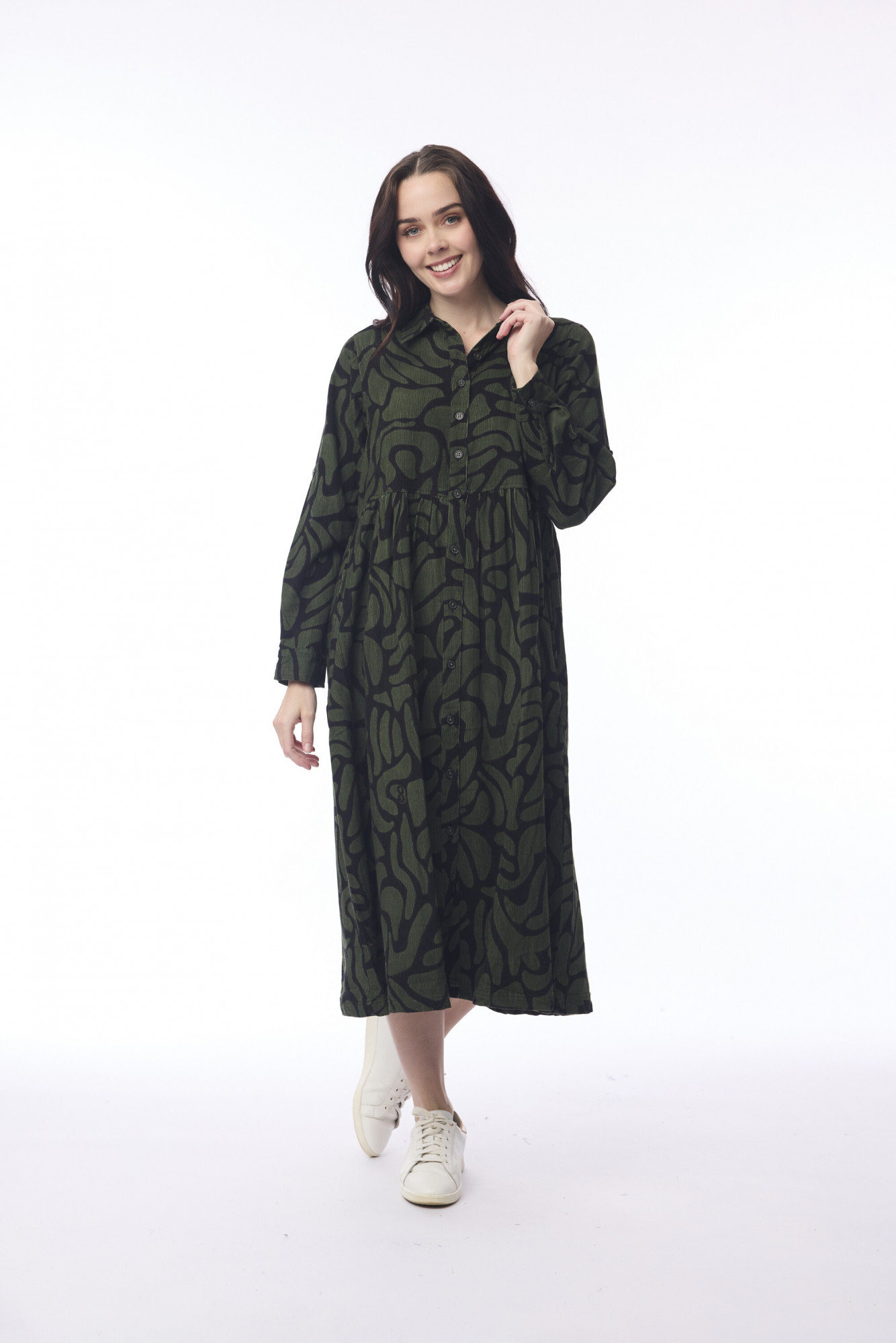The Congo Collar Maxi Dress is a timeless silhouette designed to suit any occasion. Featuring a button-through front, full sleeves, and a classic collared neckline, it offers a refined yet effortless look. A tiered skirt and practical pockets add feminine charm and everyday functionality. Crafted from 100% organic cotton in beautiful colors and prints, this dress combines style, comfort, and sustainability in one elegant piece.