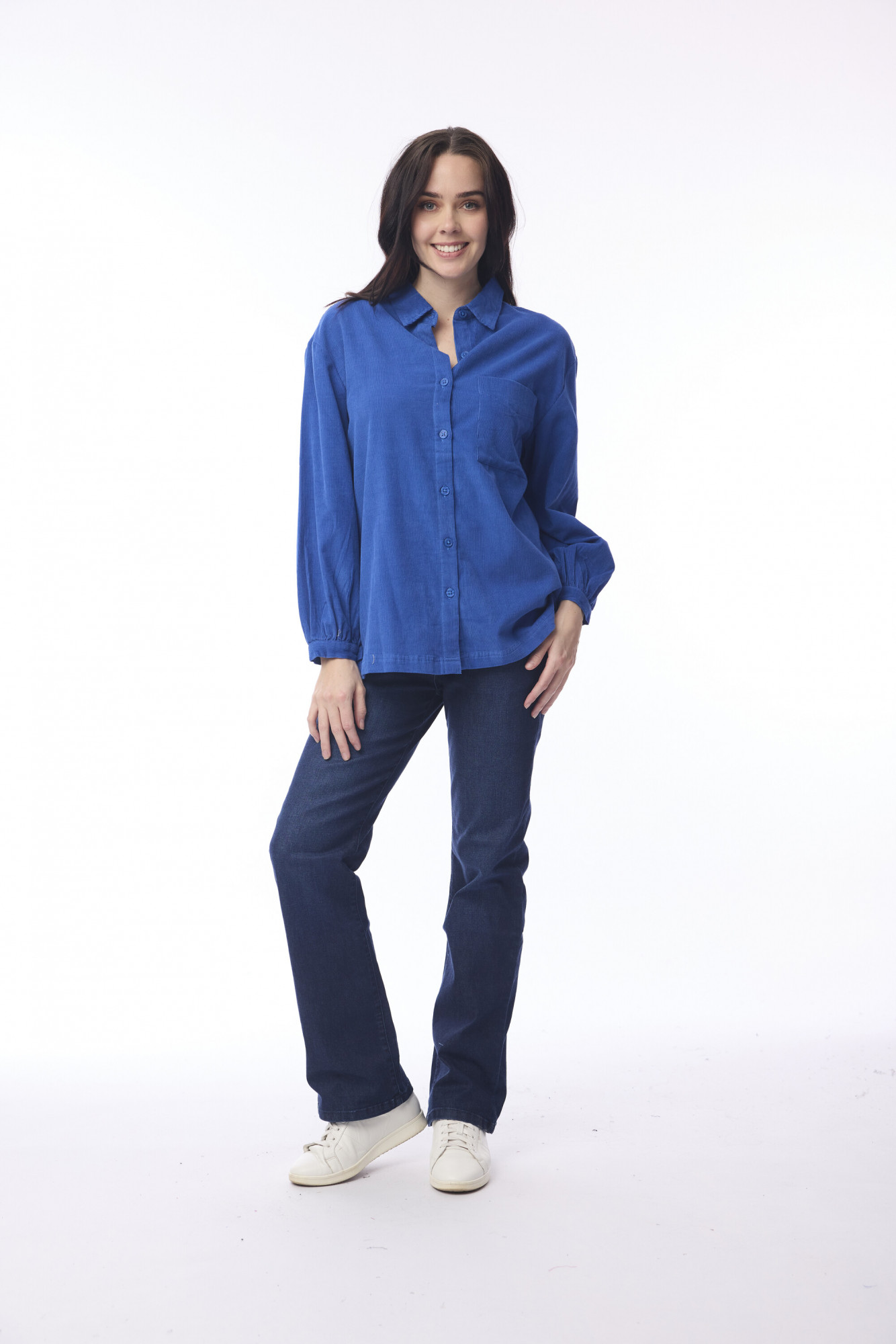 Keep it classic with the Cord Solid Shirt, crafted from 100% cotton for a soft and breathable feel. This versatile piece features a button-through front, a classic collar, and a front pocket for timeless appeal. The gathered long sleeves add a subtle touch of volume and style, making it easy to dress up or down. Perfect for layering or wearing on its own, this shirt is a wardrobe essential for effortless everyday dressing.