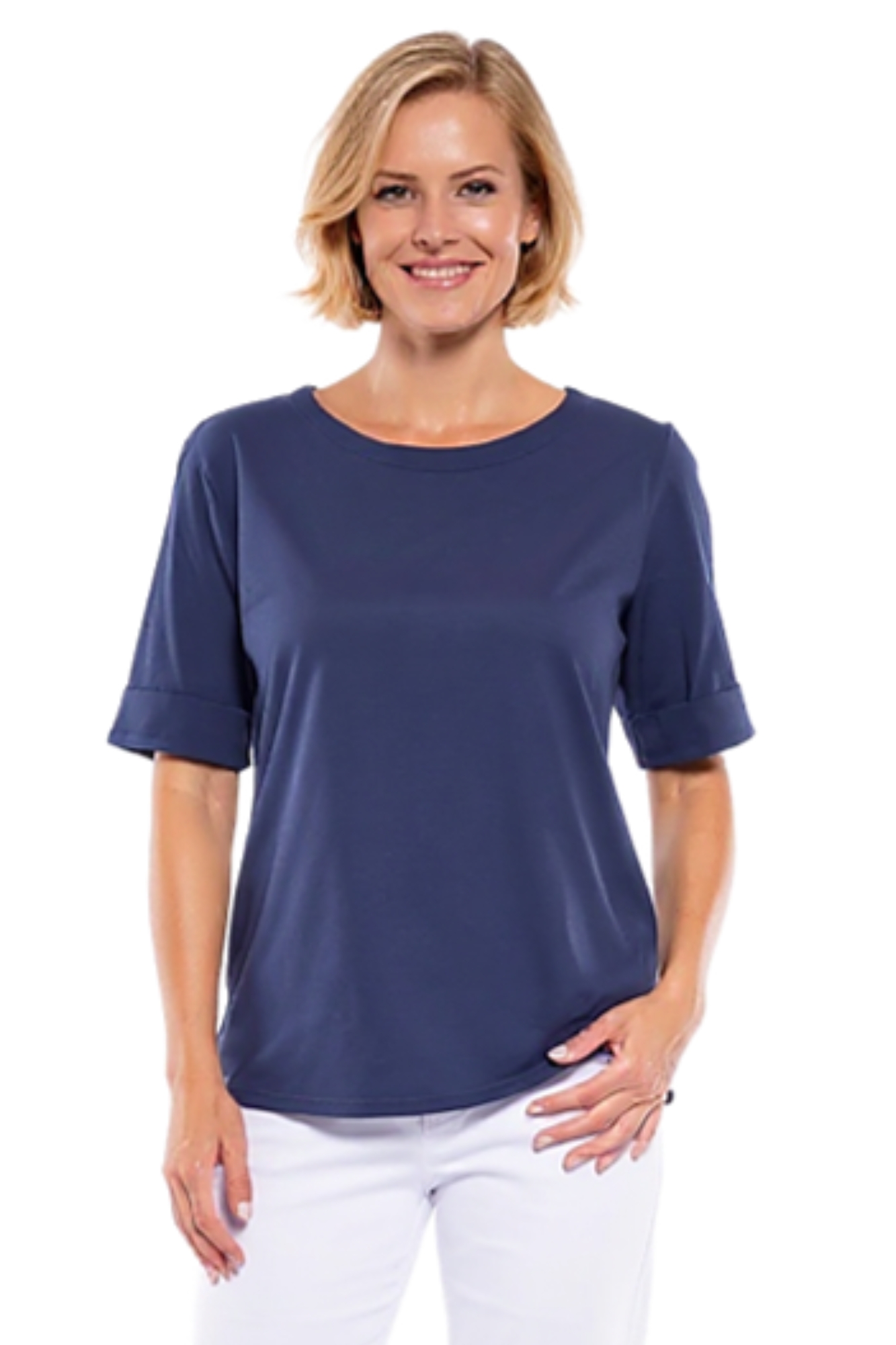 Effortlessly simple and endlessly versatile, the Cafe Latte Cuff Hem T-Shirt is a refined take on a casual essential. Designed with a classic round neckline and relaxed silhouette, this black tee delivers a clean, minimalist look that pairs easily with everything from tailored pants to everyday denim. The short sleeves are finished with subtle cuffed hems, adding a touch of structure and understated style to the relaxed design. Crafted from a soft cotton blend, the fabric feels breathable and comfortable, making it ideal for warm days or easy layering throughout the seasons. Perfect for creating polished casual outfits, this wardrobe staple offers the balance of comfort and sophistication that defines the Cafe Latte aesthetic.