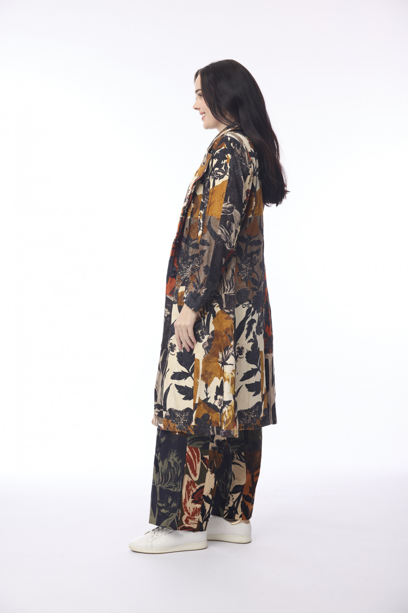 Step out in style with this Dagomba long coat, designed in a versatile knee-length silhouette. Crafted from 100% rayon, it drapes beautifully and offers a soft, lightweight feel. The button detailing along the front adds a refined touch, while long sleeves and subtle pocket detailing bring both sophistication and functionality. Perfect for layering, this coat elevates everyday dressing—whether you’re styling it over workwear, casual fits, or evening looks. Keep it fresh with a simple cold hand wash, ensuring it stays as timeless as your wardrobe.