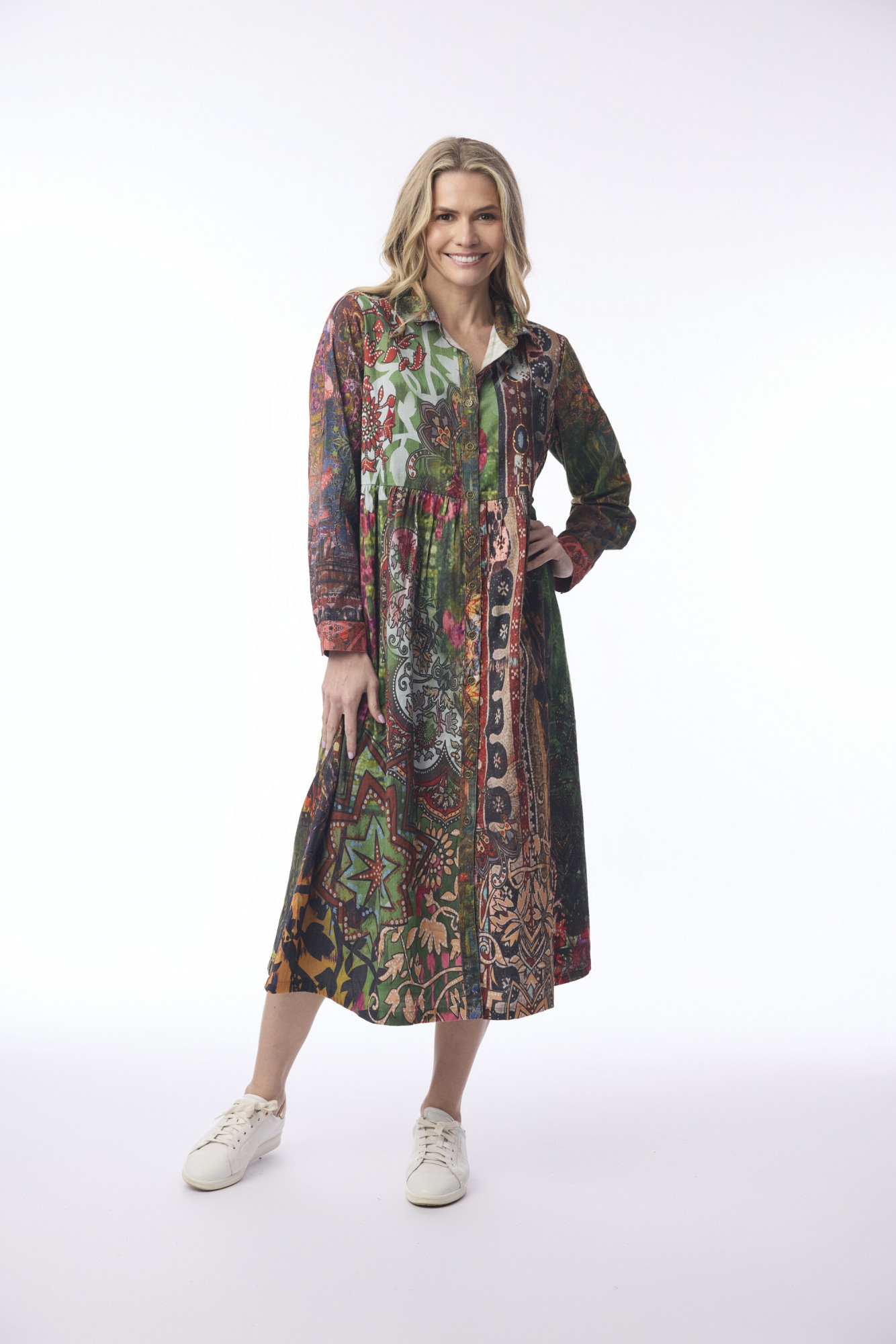 Bring fun and color into your wardrobe with the Digital Button-Up Dress. Designed with a classic button-up front, it combines timeless structure with modern charm. Intricate prints and vibrant hues make this piece both elegant and bold, while its 100% cotton fabric offers a soft, breathable feel that’s as luxurious as it is eco-conscious.