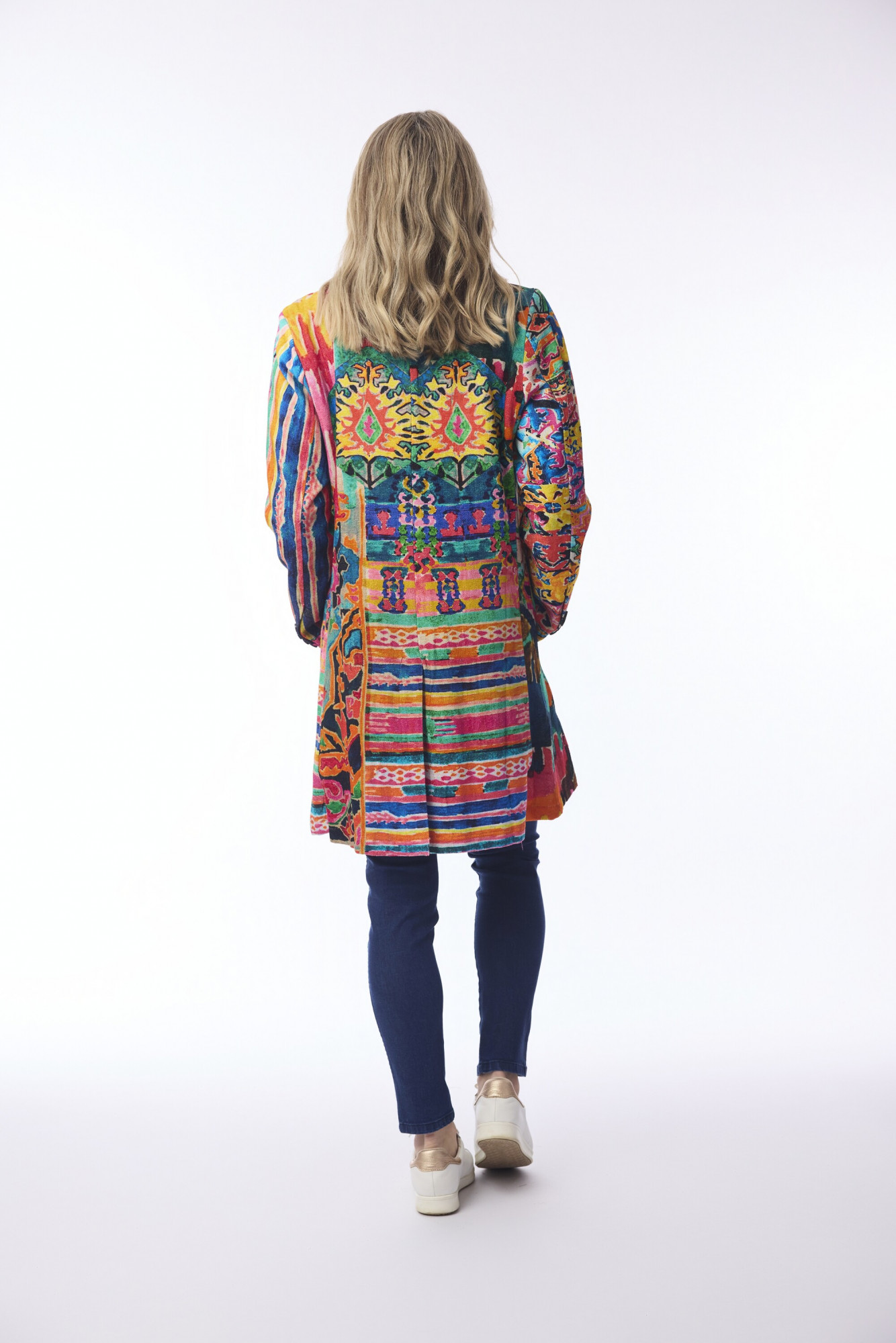 Step out in effortless style with this digital mid-length coat. Crafted from soft, breathable 100% rayon, this coat offers a refined drape and a comfortable fit. Designed to fall just above the knee, it features classic button detailing, a stand-up collar, and long sleeves for a timeless silhouette. The open-front design makes it versatile to layer, while the practical pockets add both function and flair. Perfect for elevating everyday outfits or adding sophistication to evening looks.