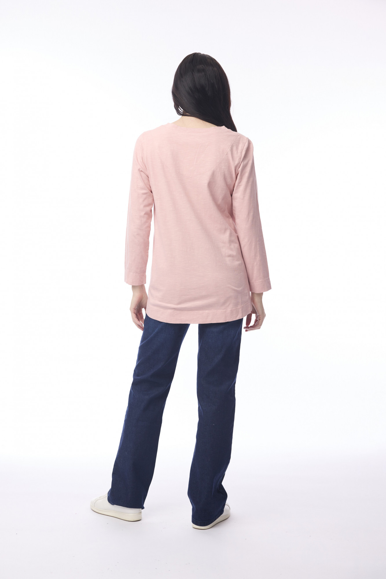 Crafted from 100% cotton, this top is designed with a relaxed tunic silhouette for all-day comfort. The simple V-neckline creates a flattering shape, while long sleeves offer coverage and ease. Falling below the hips, the A-line cut gently flares out, enhanced by side slits at the hem for added movement and a modern finish. With its clean design and versatile length, this piece works effortlessly across casual and polished looks, and is available in multiple colours.