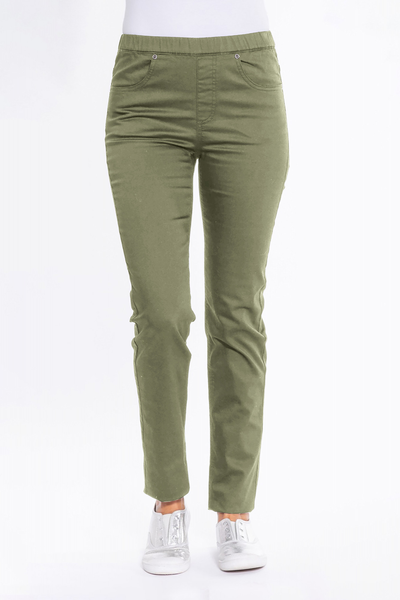 Effortlessly stylish and comfortable, these full-length slim-fit pants are designed to move with you. Crafted with a soft, flexible fabric, they offer all-day ease without compromising on a sleek, tailored look. The pull-on design with an elasticated waistband ensures a smooth, flattering fit while making them easy to wear. Minimalist detailing and a straight leg silhouette create a streamlined, modern shape that complements any wardrobe.