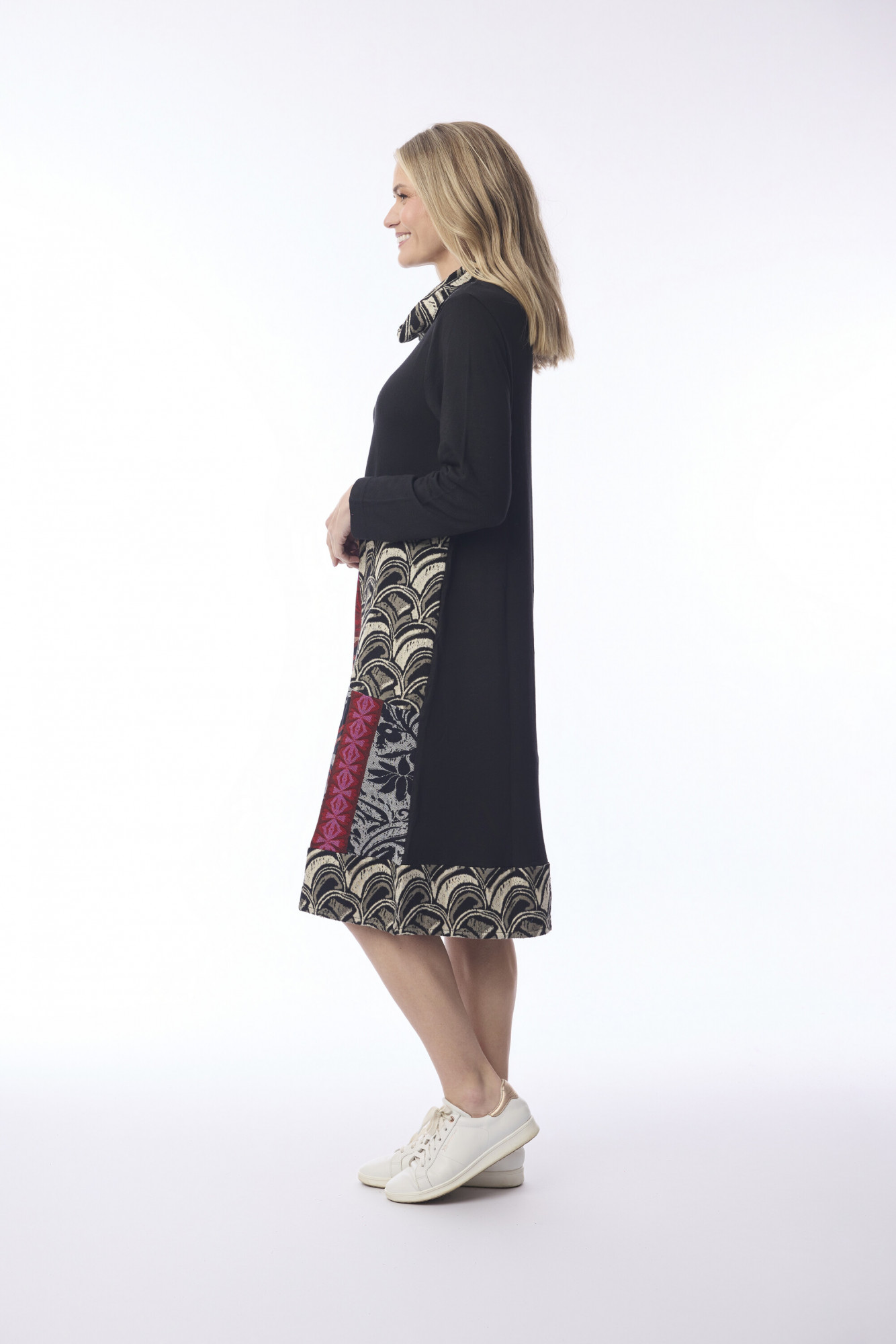 Introducing the Giza Dress, an elegant asymmetric patchwork style that blends comfort with modern flair. Designed in a relaxed shift silhouette with a fold-over cowl neckline, zip pocket, and striking asymmetric patchwork details, it’s a versatile piece that transitions seamlessly from casual outings to special occasions.