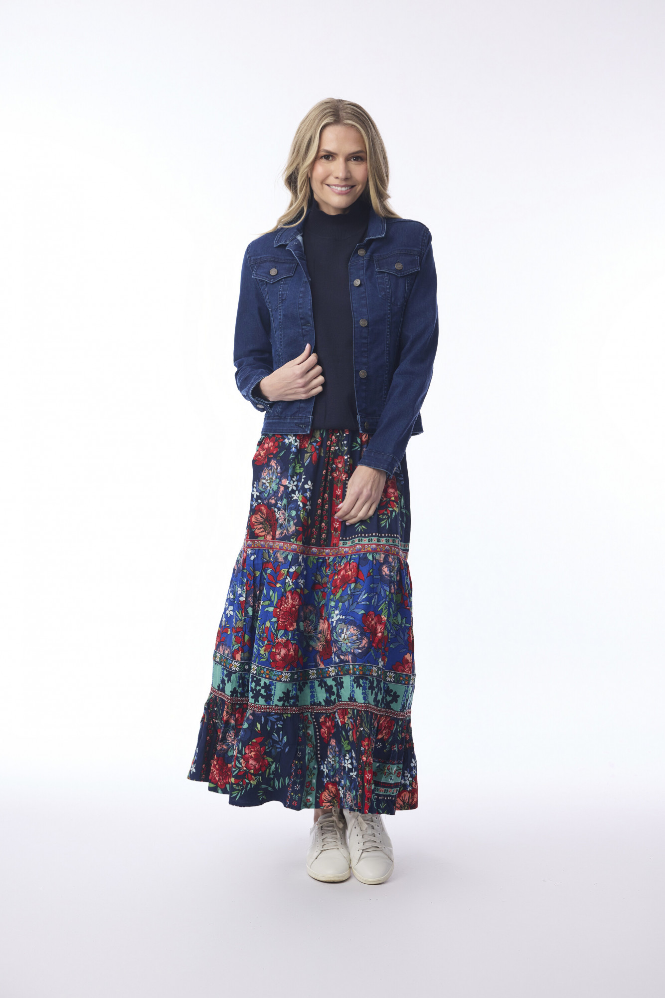 The Ivanova Skirt is designed for effortless elegance and everyday comfort. Crafted from 100% rayon, this lightweight maxi skirt drapes beautifully while offering a soft, breathable feel. Featuring a shirred elastic waistband for a flattering and flexible fit, it sits comfortably on the waist and moves with you throughout the day. The tiered layered design adds gentle volume and flow, creating a feminine silhouette that works perfectly for both casual styling and elevated occasions. Easy to wear and versatile to style, the Ivanova Skirt pairs effortlessly with your favourite tops, knits, or blouses for a relaxed yet refined look.