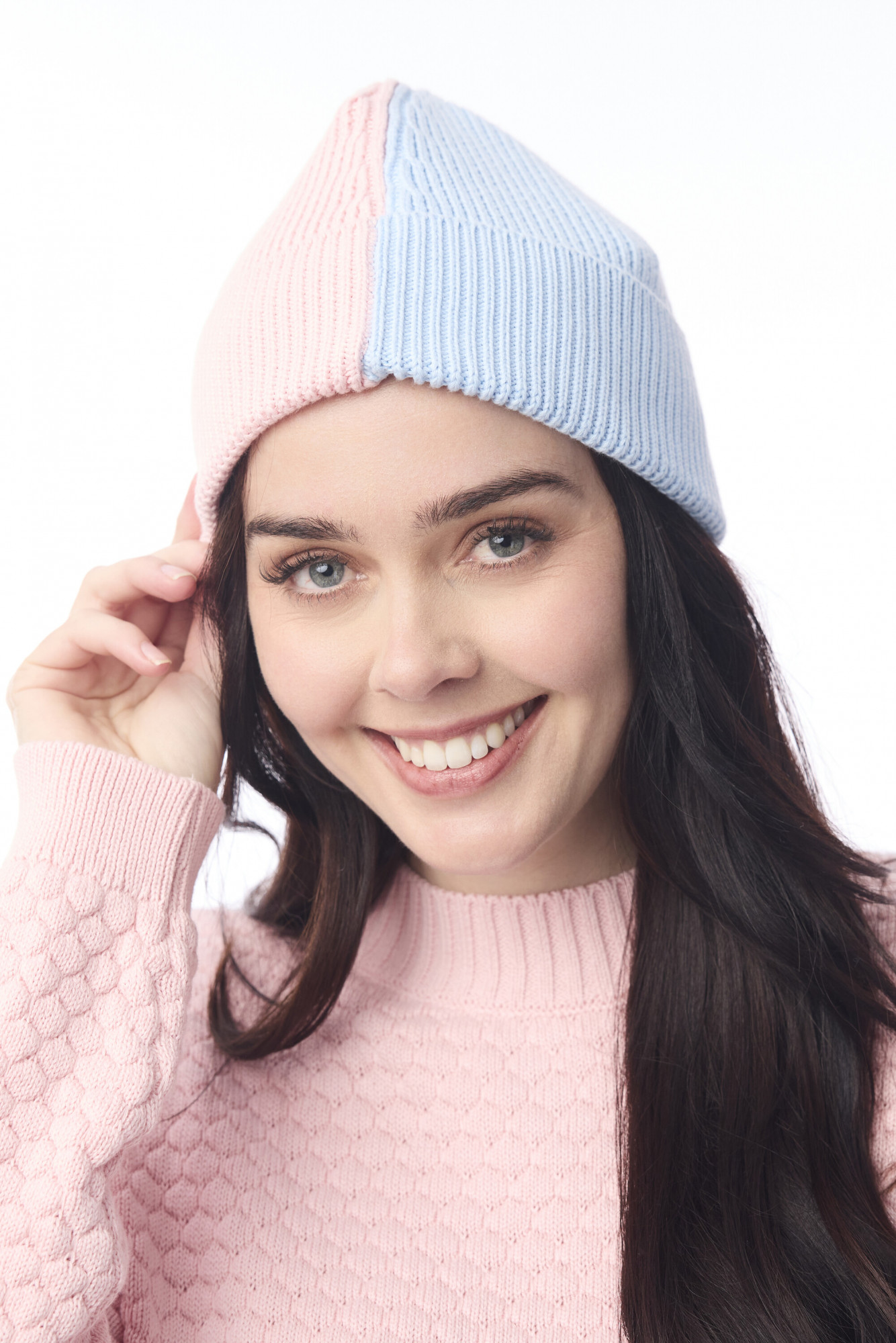 This knitted beanie is crafted from 100% organic cotton, combining warmth and comfort with a stylish design. Featuring a ribbed texture and a snug fit that covers the ears and forehead, it offers both practicality and a modern look. The two-tone color design adds subtle visual interest, making it a versatile accessory for everyday wear.