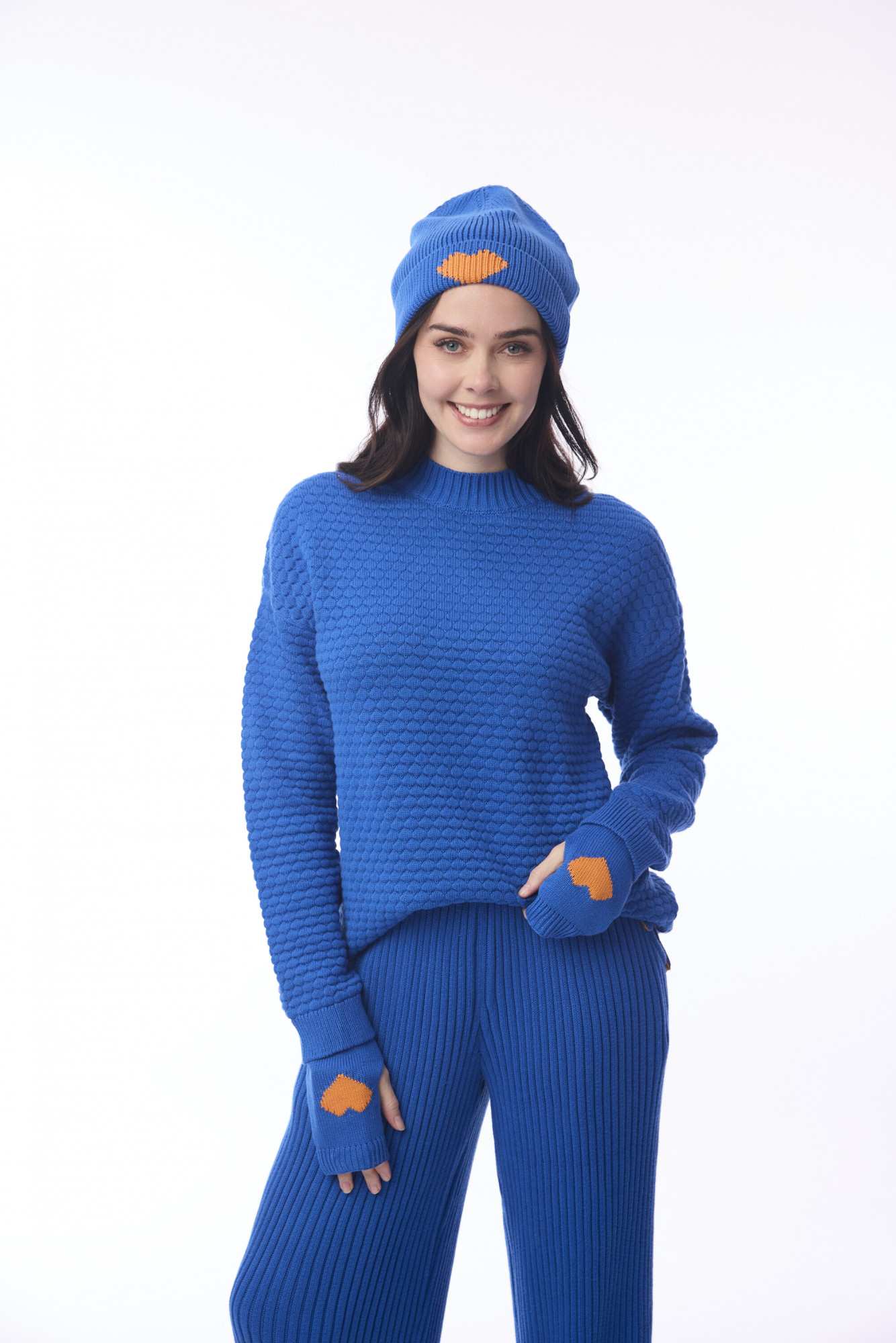 This knitted beanie is crafted from 100% organic cotton, combining warmth and comfort with a stylish design. Featuring a ribbed texture and a snug fit that covers the ears and forehead, it offers both practicality and a modern look. The two-tone color design adds subtle visual interest, making it a versatile accessory for everyday wear.