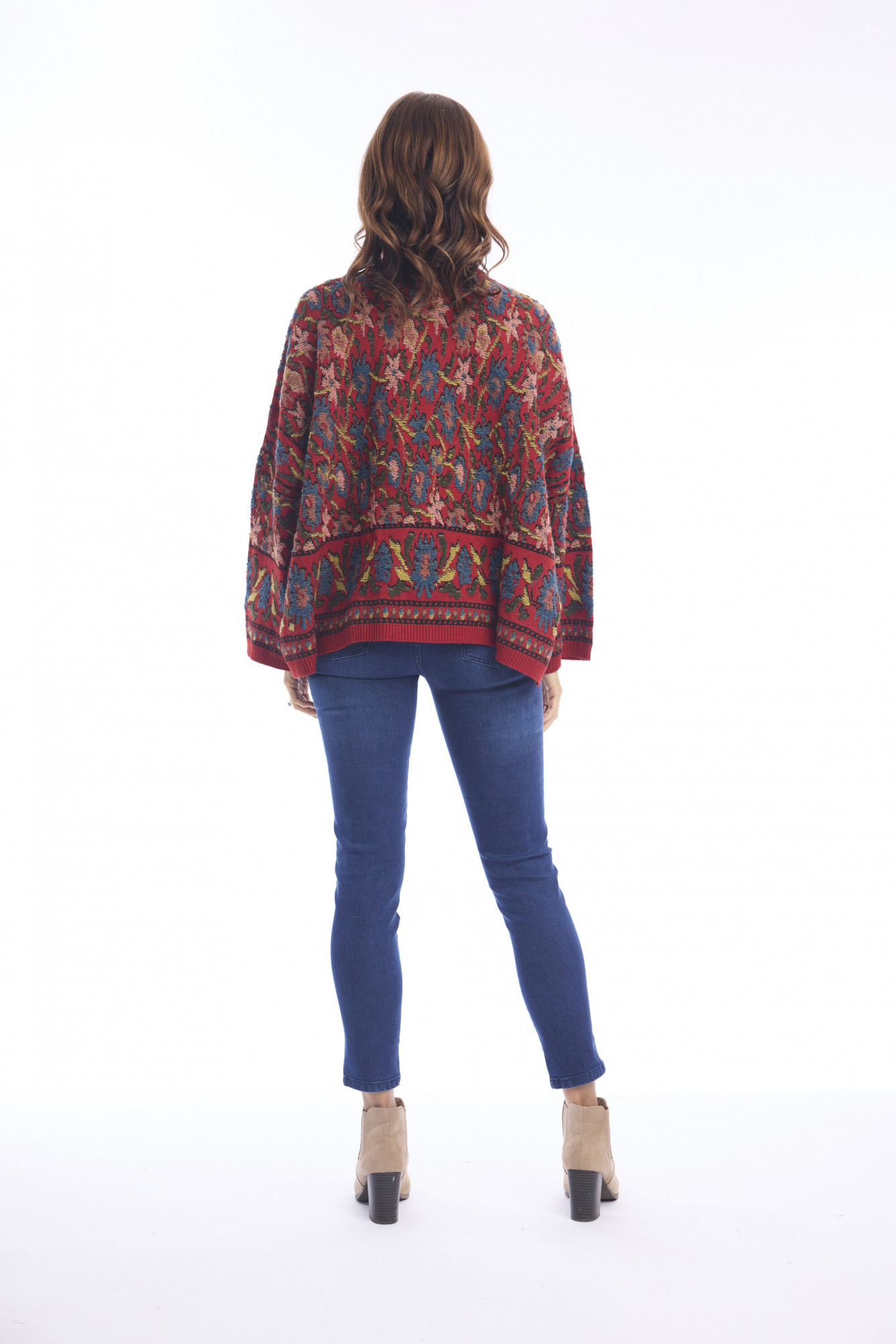 Stay cozy in this oversized boxy jumper, crafted from a soft knit blend. Featuring a high turtleneck collar in a contrasting cream tone, this sweater offers a relaxed, loose fit that drapes effortlessly over the body. Long, wide sleeves add to the comfort and casual charm, while the patterned knit brings subtle visual interest—perfect for layering or wearing on its own.