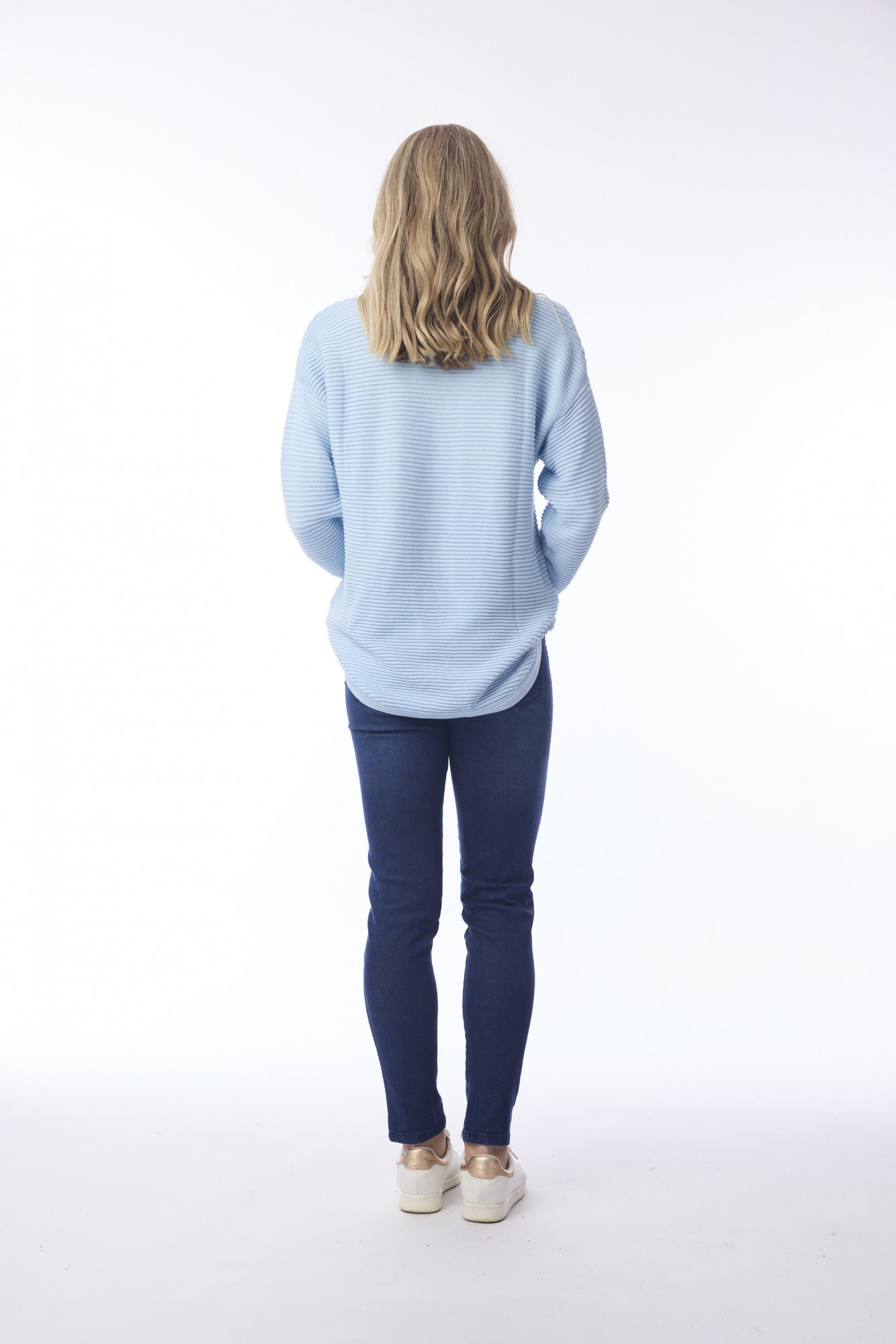 Rug up in our cosy ribbed knit jumper. This knit has been crafted from a luxurious 100% organic cotton knit making the piece both ultra comfortable and sustainable. Featuring a round neck, long sleeves, and ribbed detailing, this gorgeous soft knit jumper is sure to keep you warm and snug during the winter months