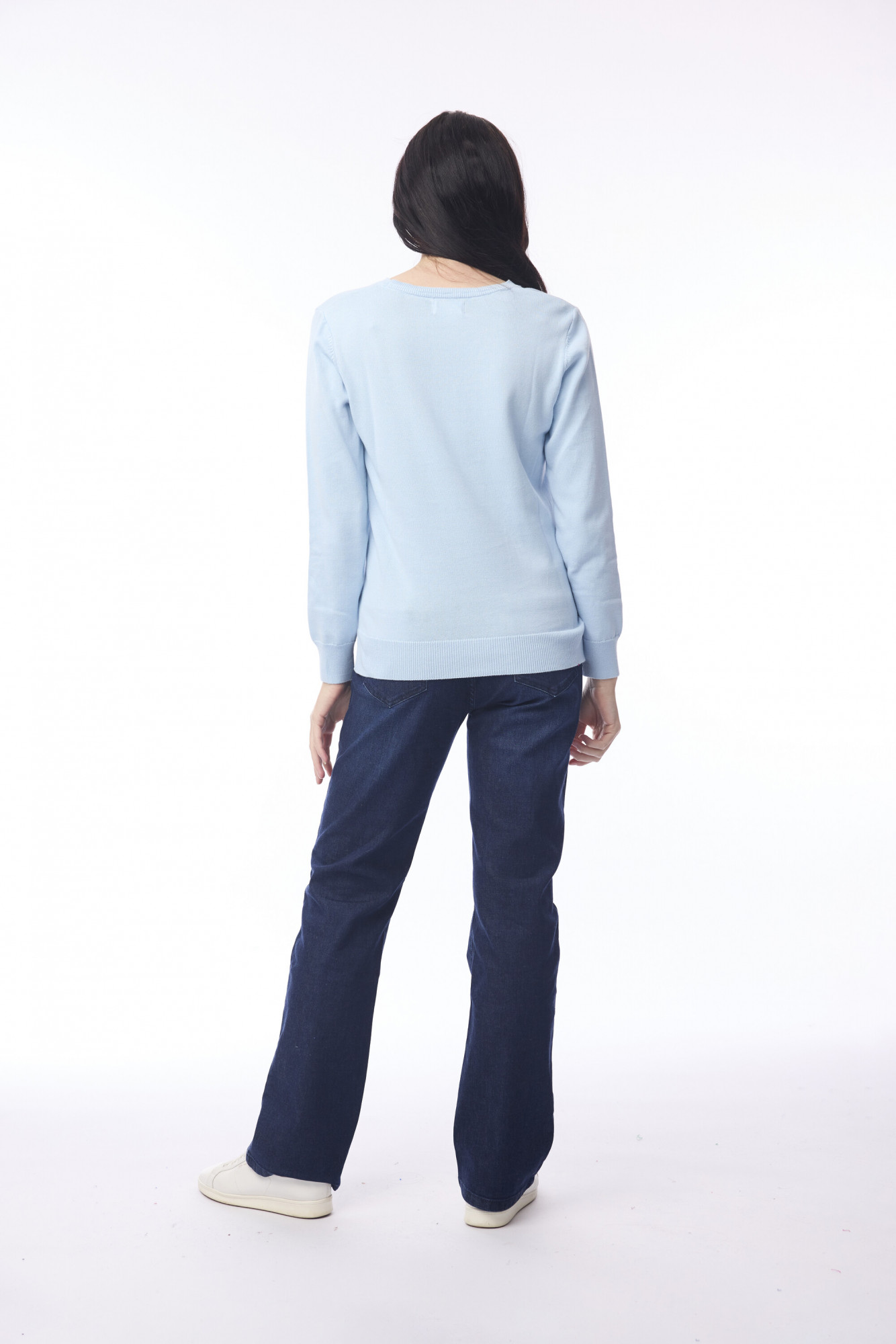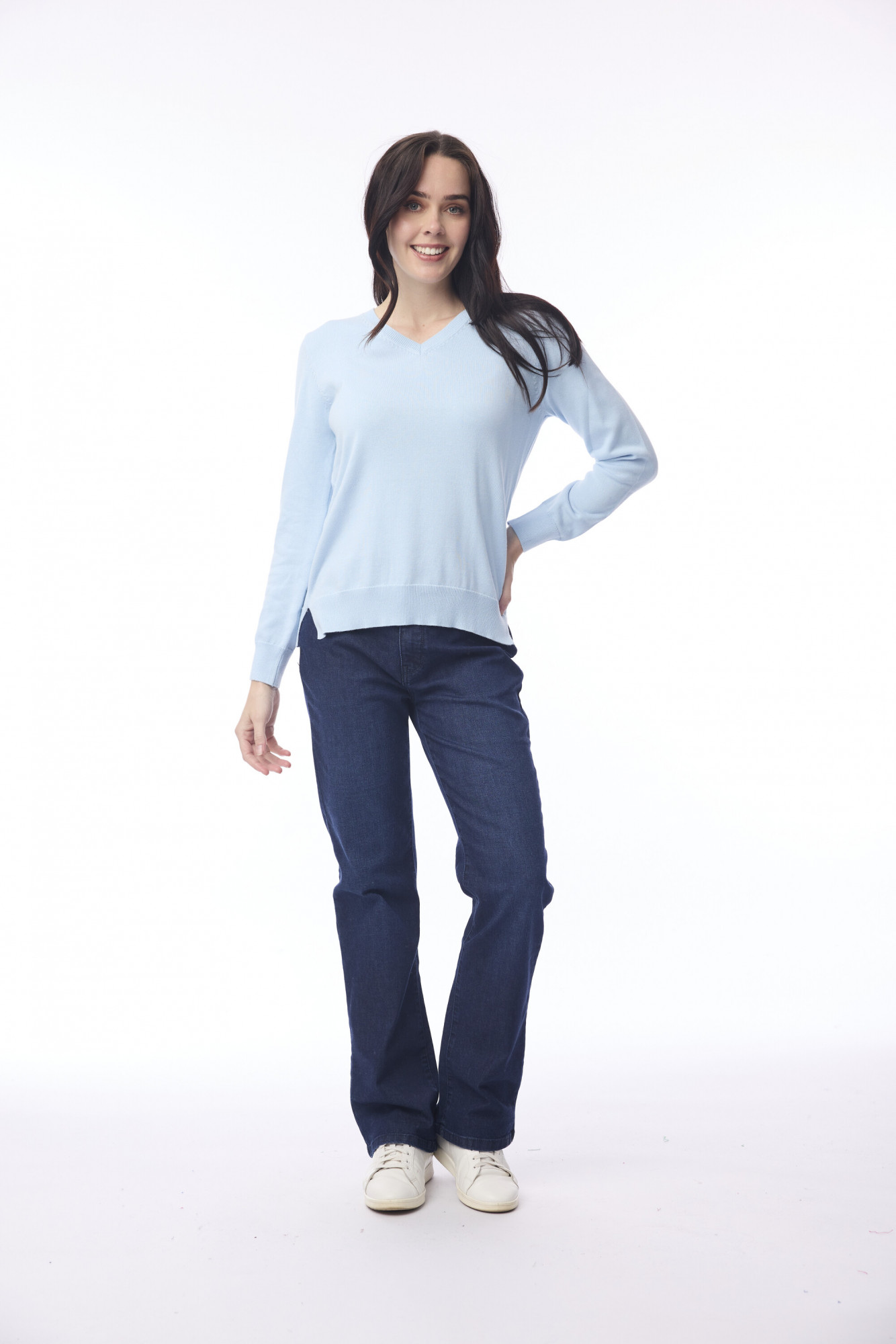 A winter wardrobe essential, this V-neck knit jumper combines comfort and style. Crafted from 100% organic cotton, it feels soft and cosy against the skin. The flattering slim fit and elegant V-neckline create a feminine silhouette, while its versatile design makes it perfect to wear alone or layer for extra warmth.