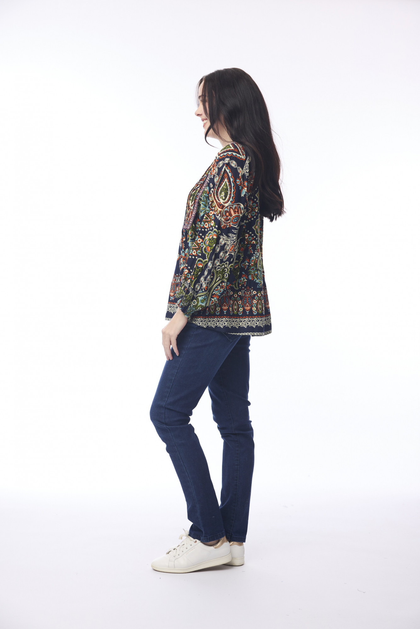 Embrace effortless boho style with the Kumbalgharh Boho Top. Featuring a V-neckline, gathered sleeves, a relaxed silhouette, and lively prints, this top brings a chic bohemian vibe to your wardrobe. Made from 100% rayon, it’s soft, eco-conscious, and designed with a button-through front and long sleeves for versatile styling