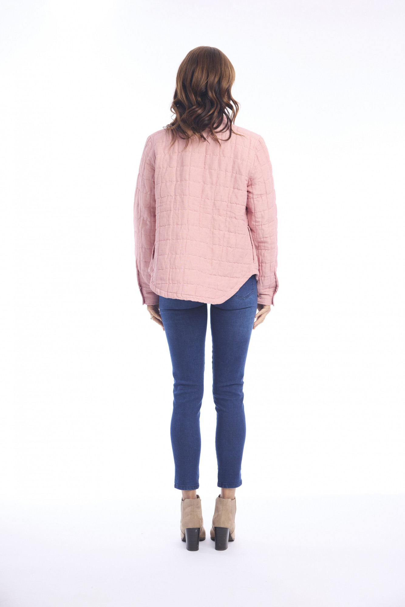 Crafted in a quilted style, this jacket blends comfort with timeless appeal. Its classic, slightly rounded silhouette offers a casual yet refined look, while the hip-length cut ensures versatile wear. Designed with a neat mandarin collar and long sleeves, it brings understated elegance to everyday styling. The front features a simple button-down closure that enhances its clean lines. Finished without visible pockets, the design stays minimal and effortlessly chic.