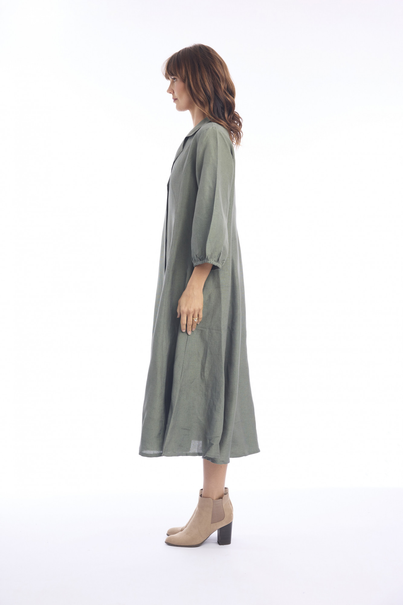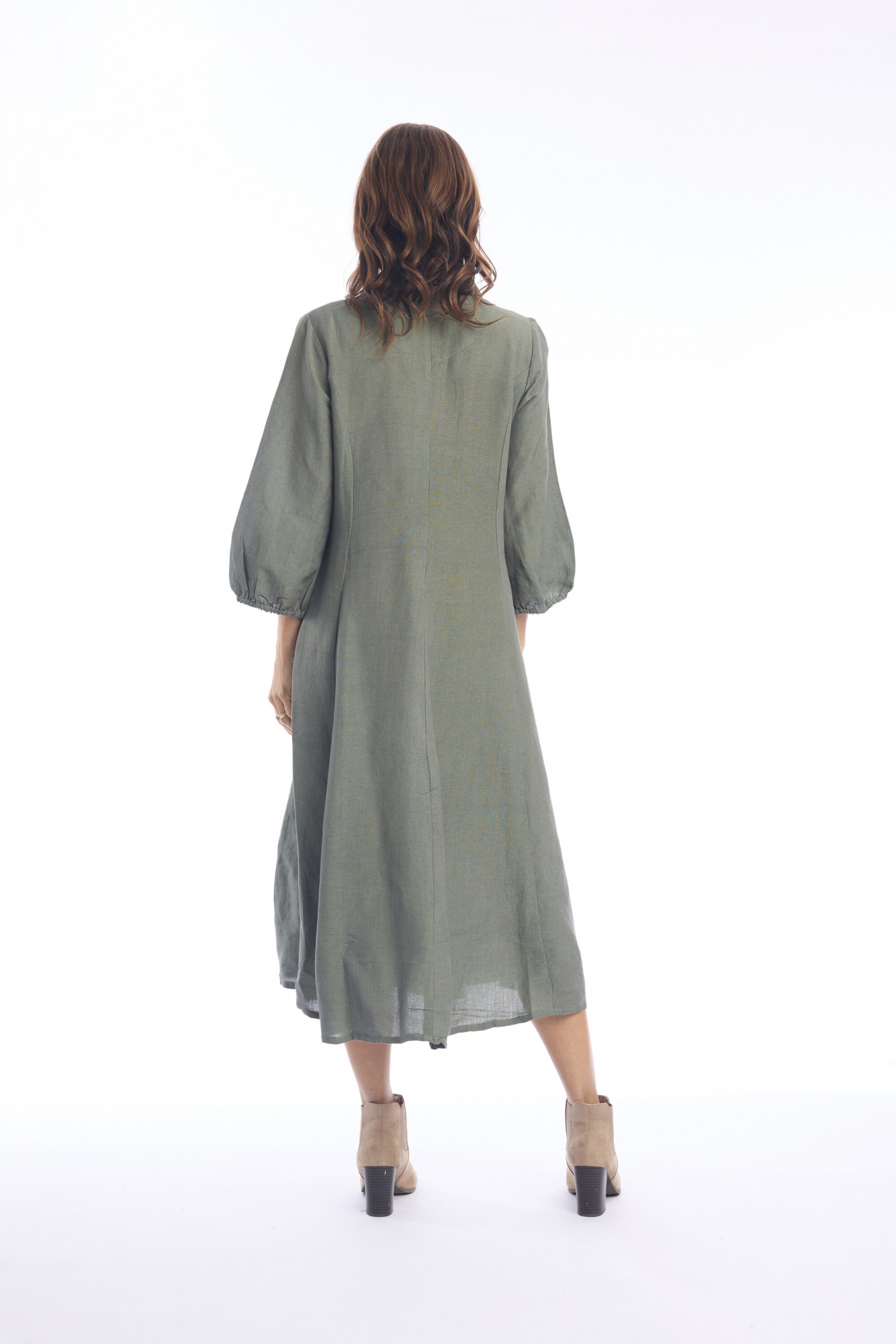 Make a bold impression with this striking linen blend dress, designed for those who embrace standout style. The voluminous puff sleeves add drama and sophistication, while the button-through design combines practicality with structured elegance. Falling below the knee, this versatile dress can be styled from day to night, whether paired with heels for a polished look or flats for a relaxed vibe.