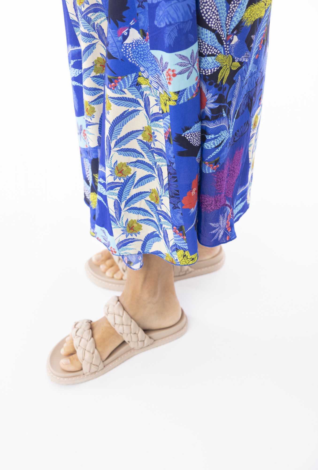 Infused with wanderlust, the Luna Strappy Dress dances between elegance and adventure. Its deep blue floral print evokes tropical dusk, while the flowing A-line shape and adjustable straps provide a tailored fit. Finished with a rounded neckline, this full-length dress is a breezy essential for warm, carefree days.