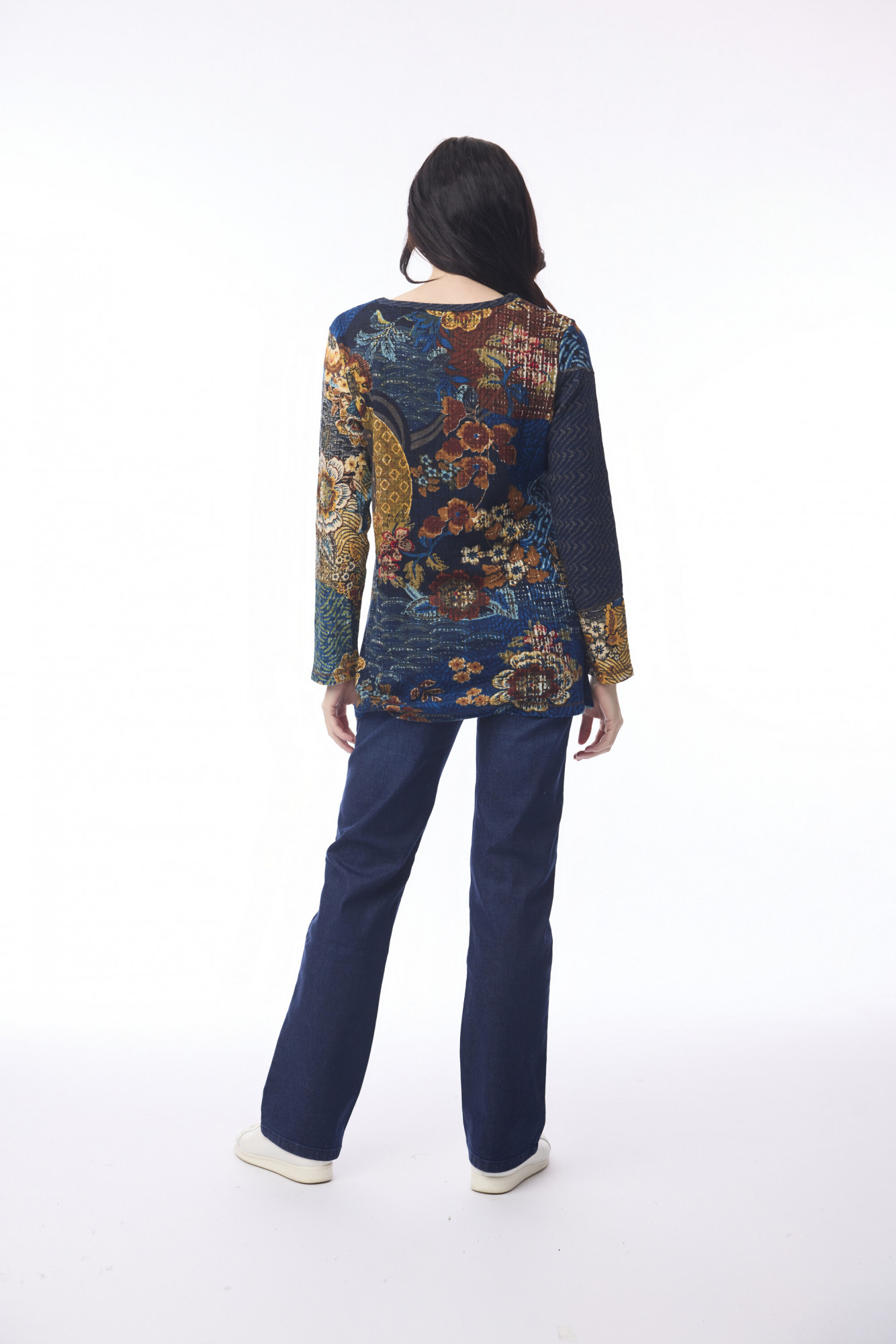 Brighten your basics with this long-sleeved patch top crafted from a soft rayon blend for all-day comfort. Featuring a classic round neckline and playful patch prints, it adds a stylish, vibrant touch to any outfit.