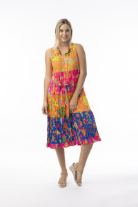 Step into the sunshine in style with our vibrant Miraflores boho dress. Perfect for beach holidays, this lightweight, colourful piece promises comfort and style featuring a relaxed silhouette, midi-length skirt, and sleeveless design. Ideal for soaking up the sun or sipping cocktails by the sea, this is your go-to for effortless elegance.