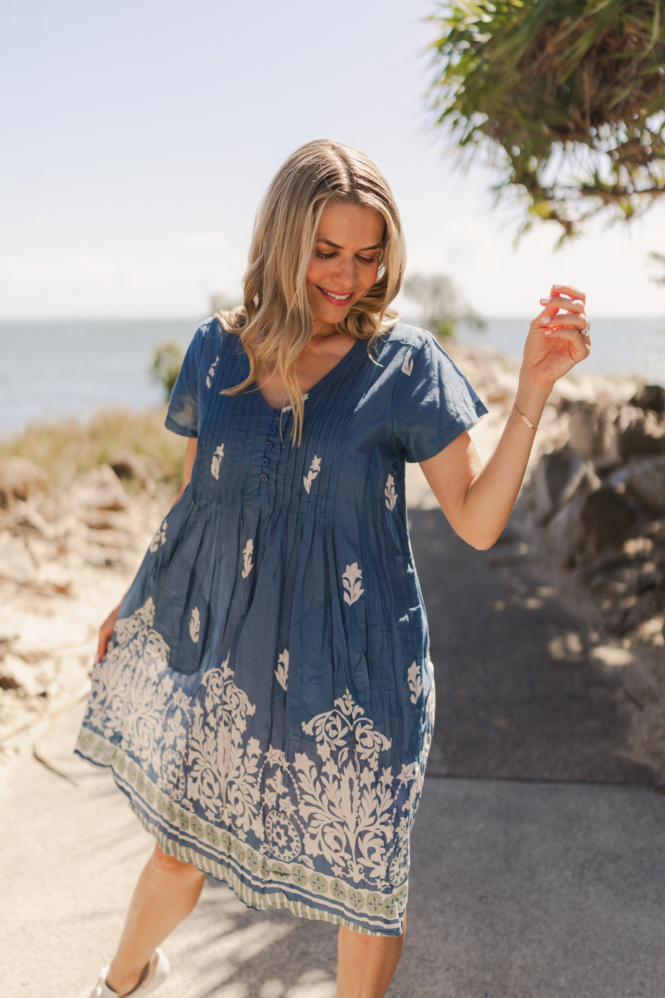 Experience summer in full bloom with our Nicola. Made from 100% cotton, and available in an array of vibrant summer prints. An One Summer must have, featuring cap sleeves, built in pockets, and pintuck detailing along the bust ensuring effortless style all summer long.
