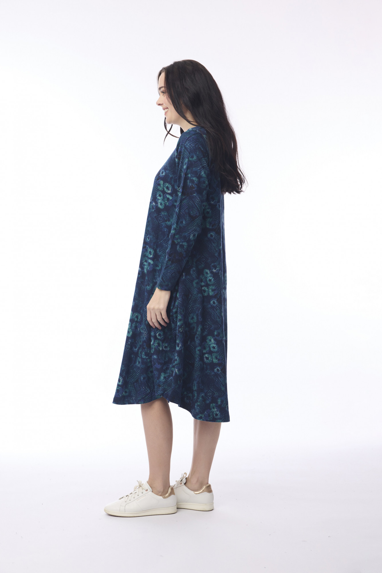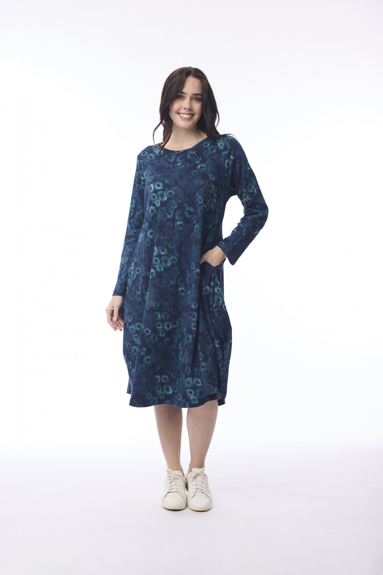 Step out in style with this classic bubble dress, crafted from 100% cotton for comfort and eco-conscious wear. Designed with a crew neckline, long sleeves, and a flattering midi-length bubble skirt, it features a curved waist seam that enhances the silhouette. Perfect for staying chic and comfortable through the cooler months.