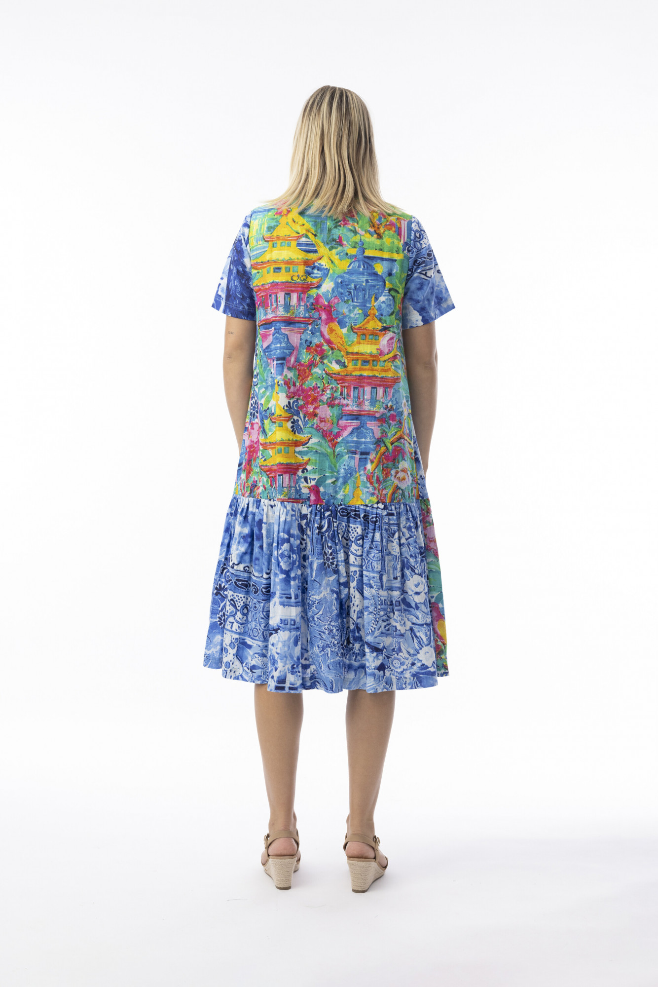 Step up your summer style with our gorgeous Okayama Patch Dress! This eye-catching piece features a playful mix of print and colour, making it ideal for sunny days out. With its relaxed fit, tiered skirt, classic button up collar, short sleeves and breathable fabric, you'll stay comfortable and stylish all season long.