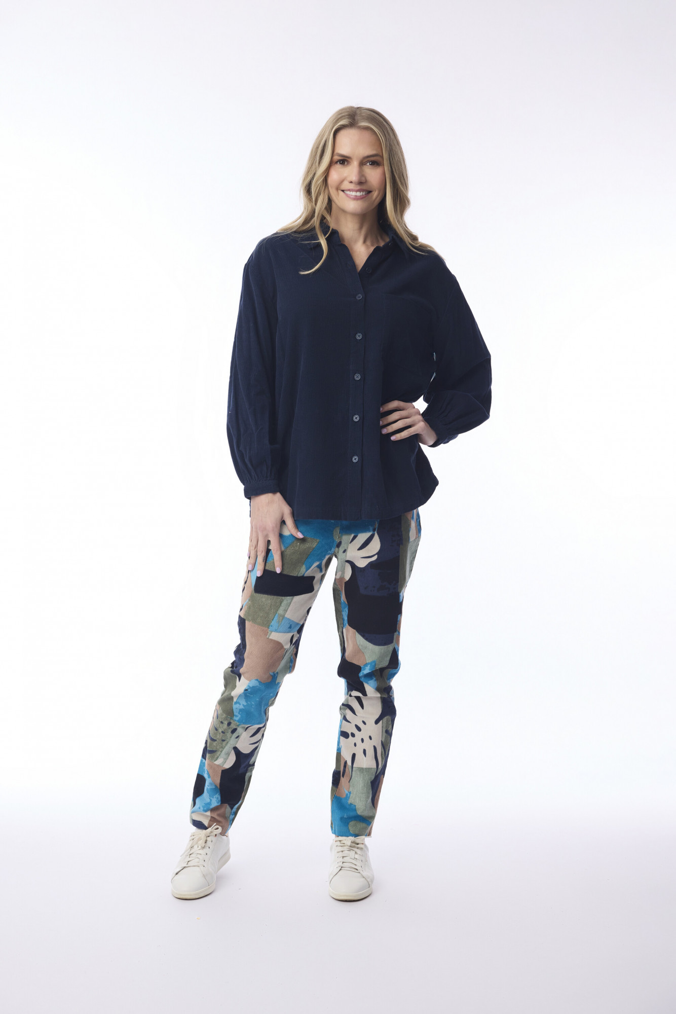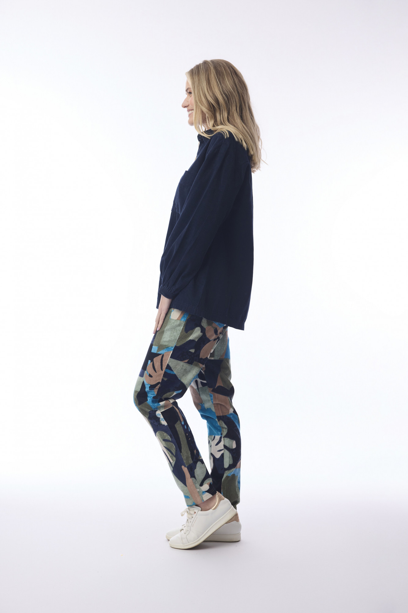 Crafted from a soft cotton-lycra blend, the Panama Pant Stretch offers a slim fit with a mid-rise silhouette. Ankle-length for versatile styling, it features a comfortable elastic waistband for ease of movement and a modern, flattering look—perfect for everyday wear.