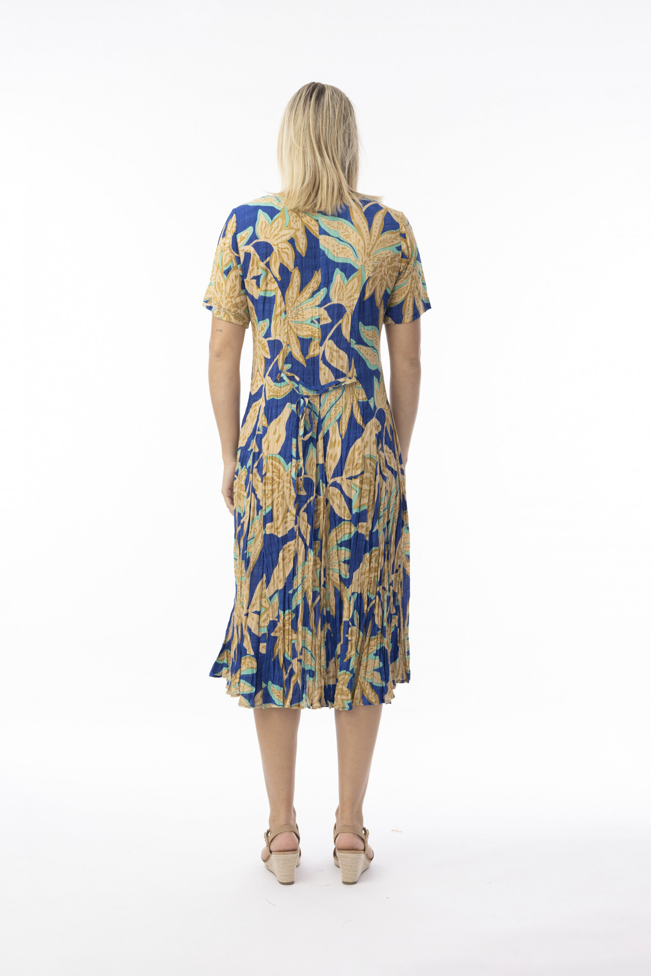 Elevate your beach holiday wardrobe with our colourful and comfortable Godet dress. Made from natural fibres, it features short sleeves, a flattering v-neckline, stunning colourful print, and godet panels through the skirt that create a beautiful drape and swing in the skirt. Ideal for enjoying warm summer days, this dress combines comfort and style effortlessly.