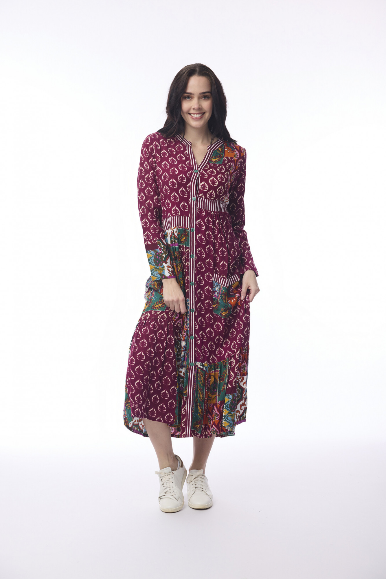 The Prato Patch Dress is a timeless piece with a modern twist. Crafted from 100% rayon for a soft, flowy drape, it features a flattering V-neckline, button-through front, and long sleeves. Falling to a midi length, this dress blends comfort and elegance, while the patch-inspired design adds a unique touch of character. Perfect for day-to-night dressing.