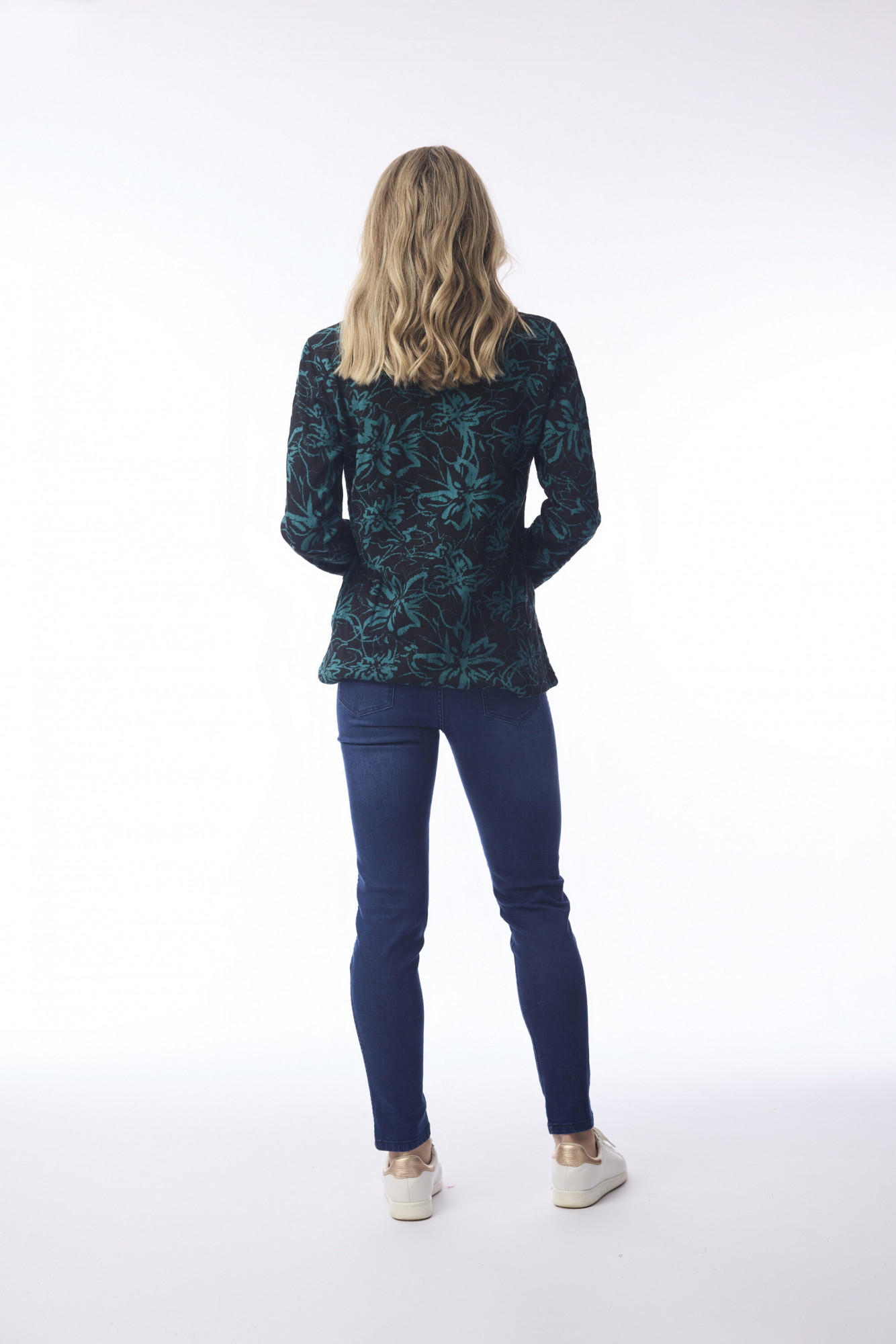 The Prato Top Cowl Neck combines comfort with creative flair. Crafted from 100% cotton, this relaxed tunic features a softly draped cowl neckline, long sleeves, and a flowing A-line silhouette that flatters every shape. The striking black base is brought to life with bold teal botanical motifs, giving the piece an artistic edge. With discreet side-seam pockets and hip-skimming length, it’s a versatile style that feels as good as it looks — perfect for layering or wearing on its own.