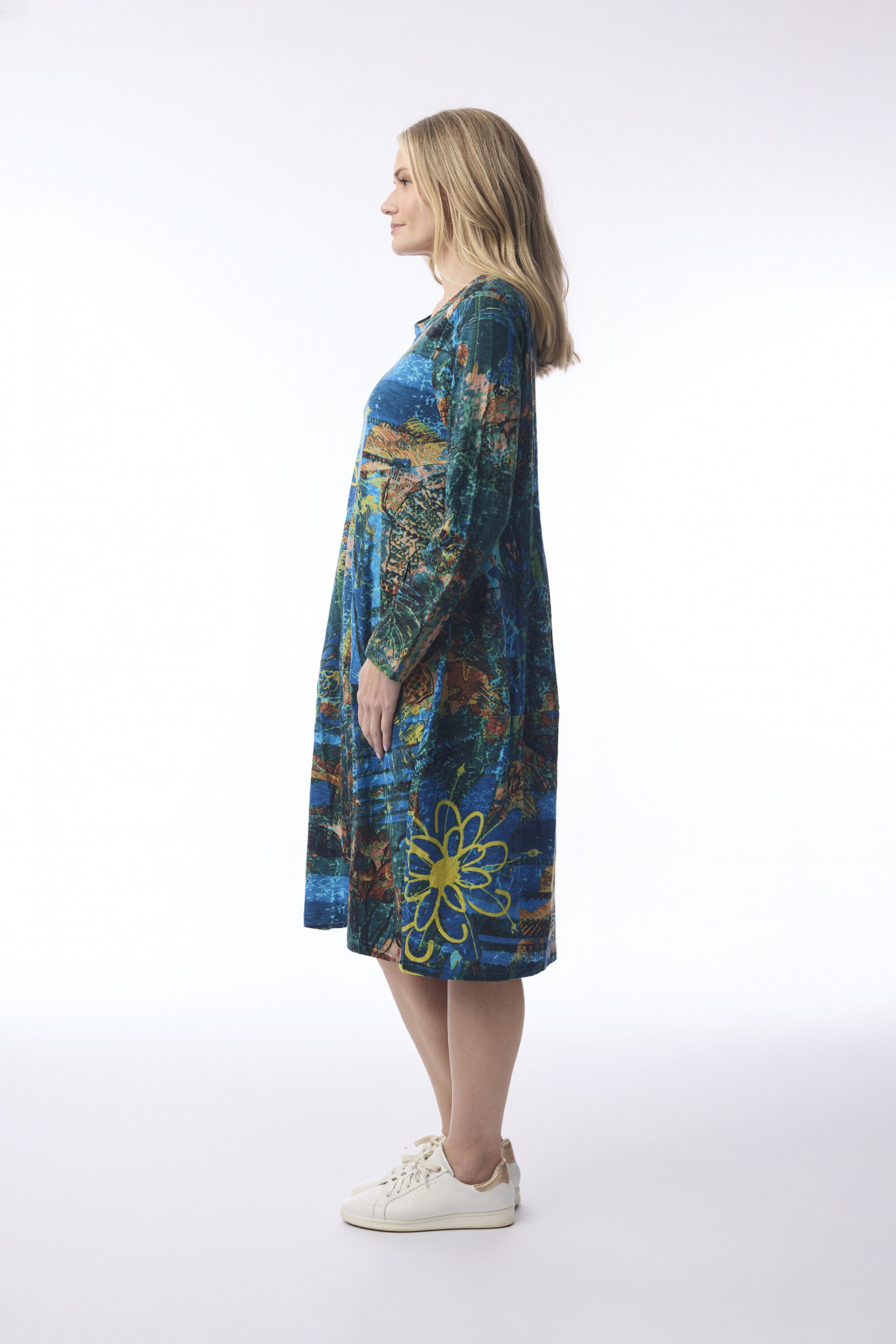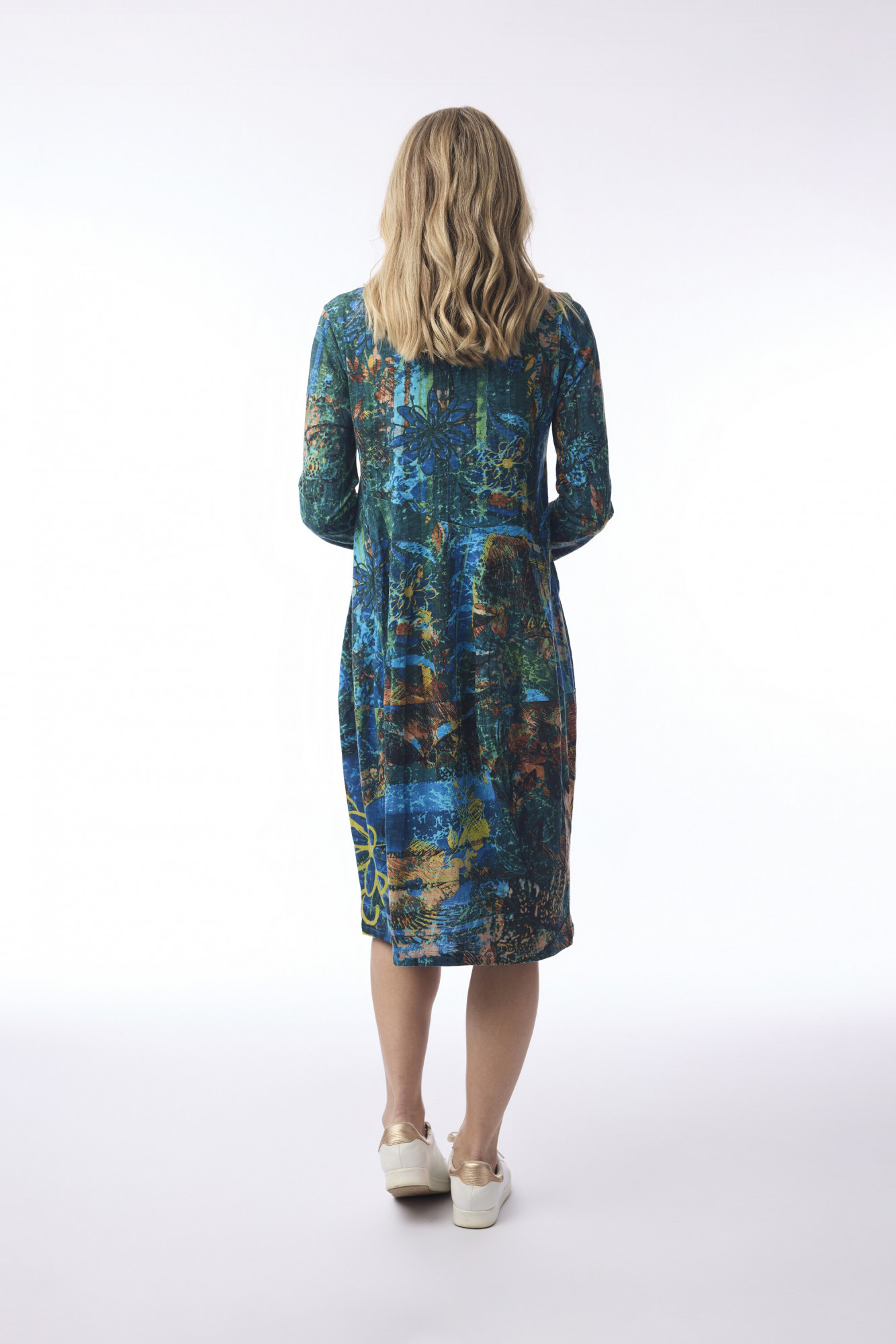 Step out in style with the Printed bubble dress, crafted from 100% organic cotton for comfort and sustainability. Featuring a crew neckline, long sleeves, a midi-length skirt, and a relaxed fit, this dress flatters the silhouette while keeping you chic and cosy through the winter months—perfect for effortless everyday elegance.