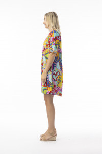 Add a splash of colour to your summer look with our eye-catching Ocampo contemporary dress. Featuring a colourful, eye-catching pattern, this dress boasts a relaxed fit with half sleeves and a flattering knee-length hem. Made from lightweight, breathable fabric, it's perfect for warm weather. The round neckline and convenient side pockets add functional elegance, making it ideal for both casual outings and beach holidays.