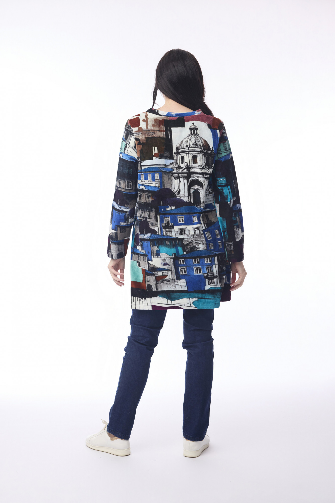 Bring effortless charm to your wardrobe with this Printed Cotton Tunic. Crafted from soft cotton, this long-sleeved tunic drapes gracefully for all-day comfort. Designed with a round neckline and mid-thigh length, it strikes the perfect balance between relaxed ease and refined style. The tunic showcases a vibrant abstract print in rich hues of red, purple, blue, and green, lending it a bohemian-meets-urban flair. Playful yet elegant, it’s a versatile piece that pairs beautifully with leggings, slim pants, or layered accessories.