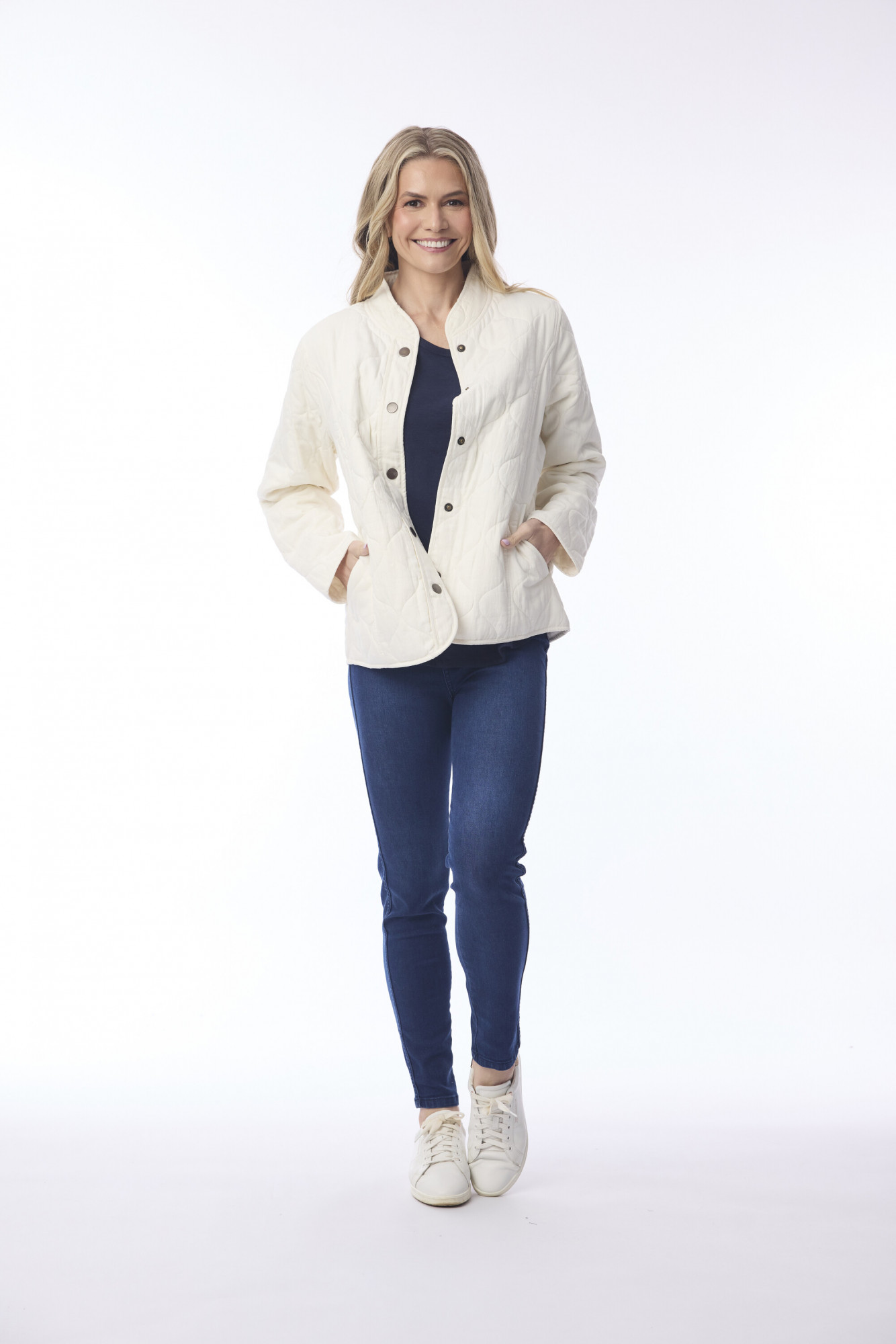 Crafted from 100% cotton, this quilted jacket offers both comfort and warmth for cooler days. Designed with long sleeves, a button-through front, and side pockets for added functionality, it’s a versatile layering piece that blends timeless style with everyday practicality.