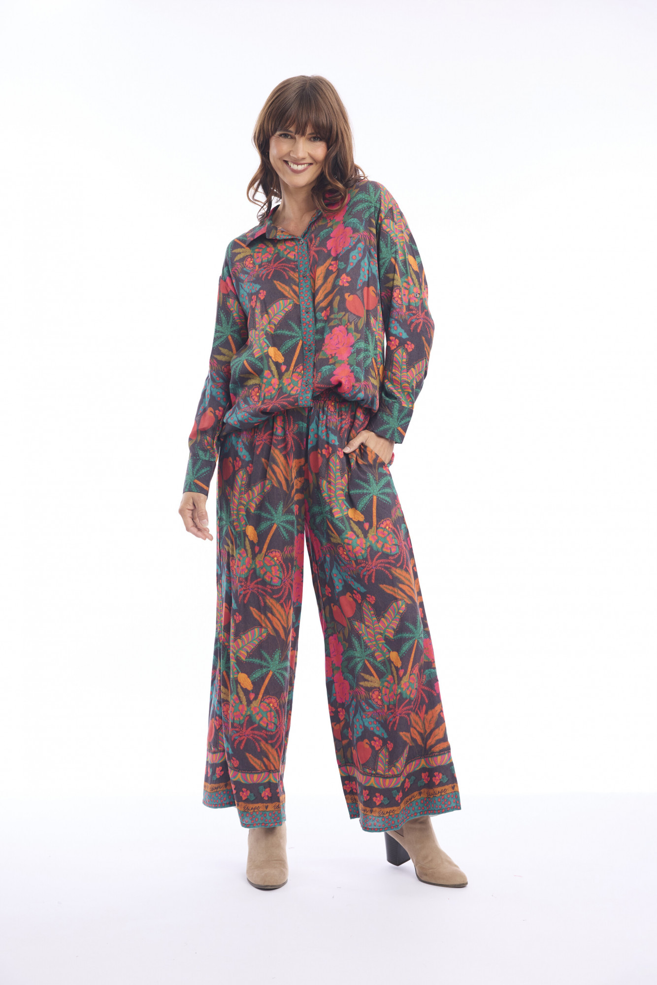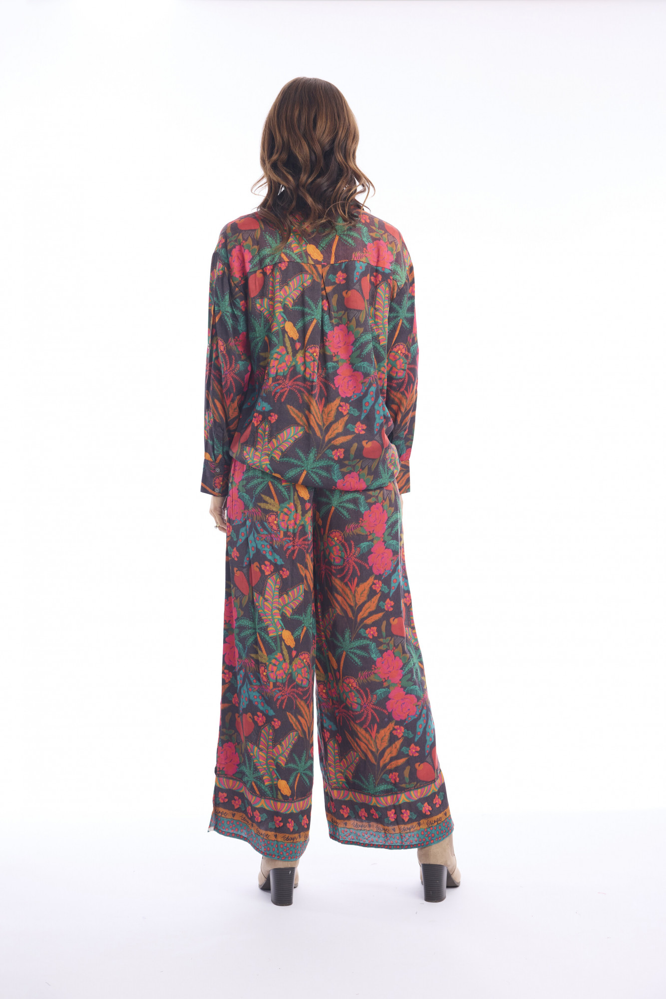 Made of 100% rayon, the Samos Pant is a statement piece that captures the essence of bohemian style. Featuring a bold and vibrant all-over print, these palazzo-cut trousers are designed with an ultra-wide leg that flows beautifully with every step. The lightweight fabric drapes effortlessly, offering both comfort and movement, while the relaxed fit makes them perfect for everyday wear or dressed-up occasions. Blending artistry and ease, the Samos Pant brings effortless flair to any wardrobe.