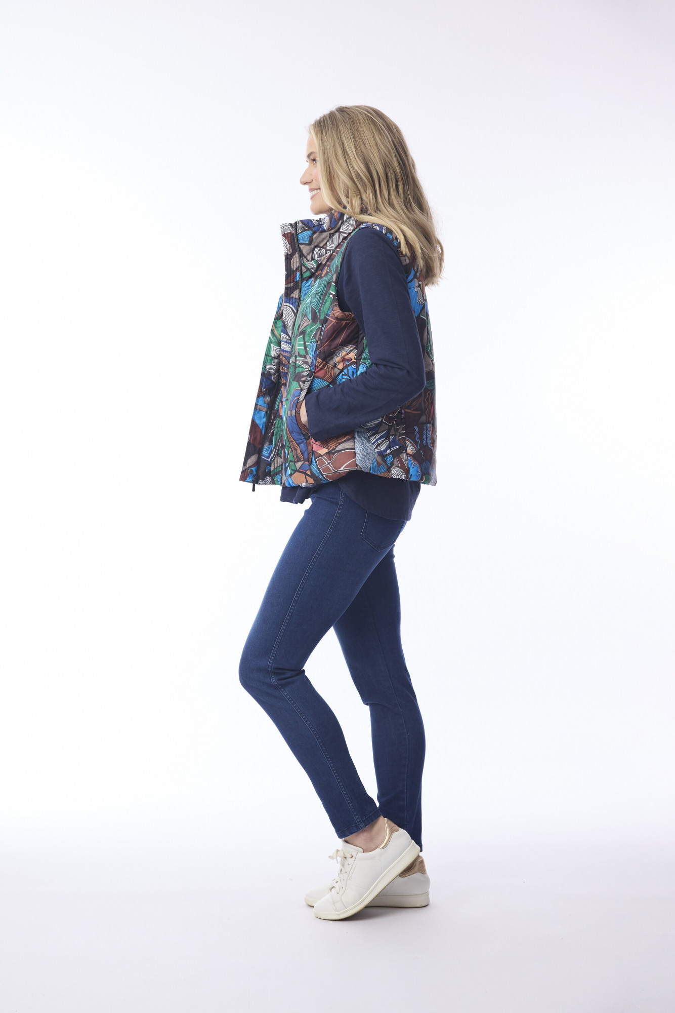 A must-have for transeasonal dressing, this sleeveless puffer vest brings warmth, comfort, and personality to your wardrobe. Designed with a high neck and filled with thick, cozy padding, it’s perfect for layering over casual or dressy looks. Available in a range of vibrant colours and intricate prints, it adds a bold, stylish touch to cold-weather outfits. Cold handwash recommended to keep the colours and details looking fresh.