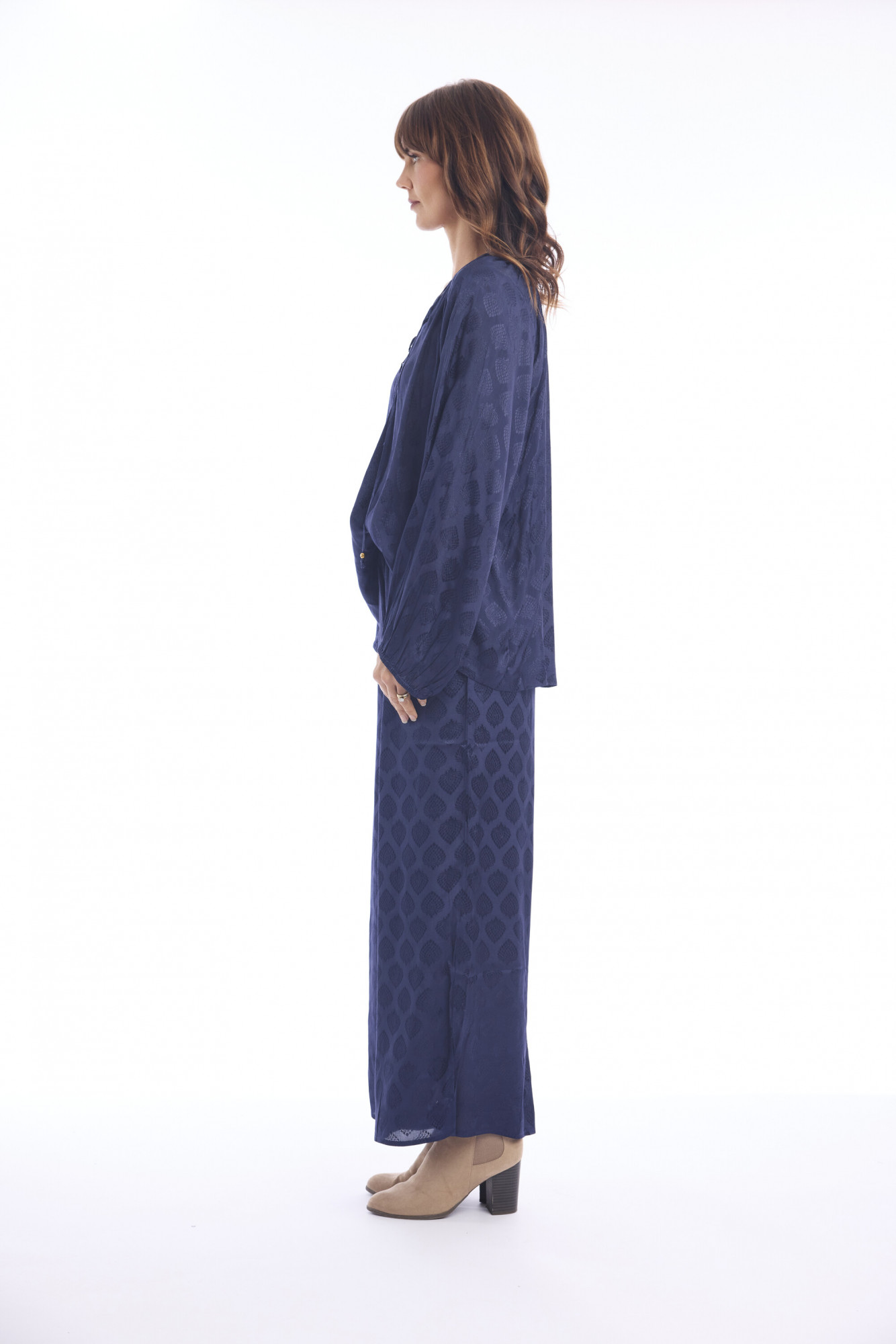 • Long gathered sleeve