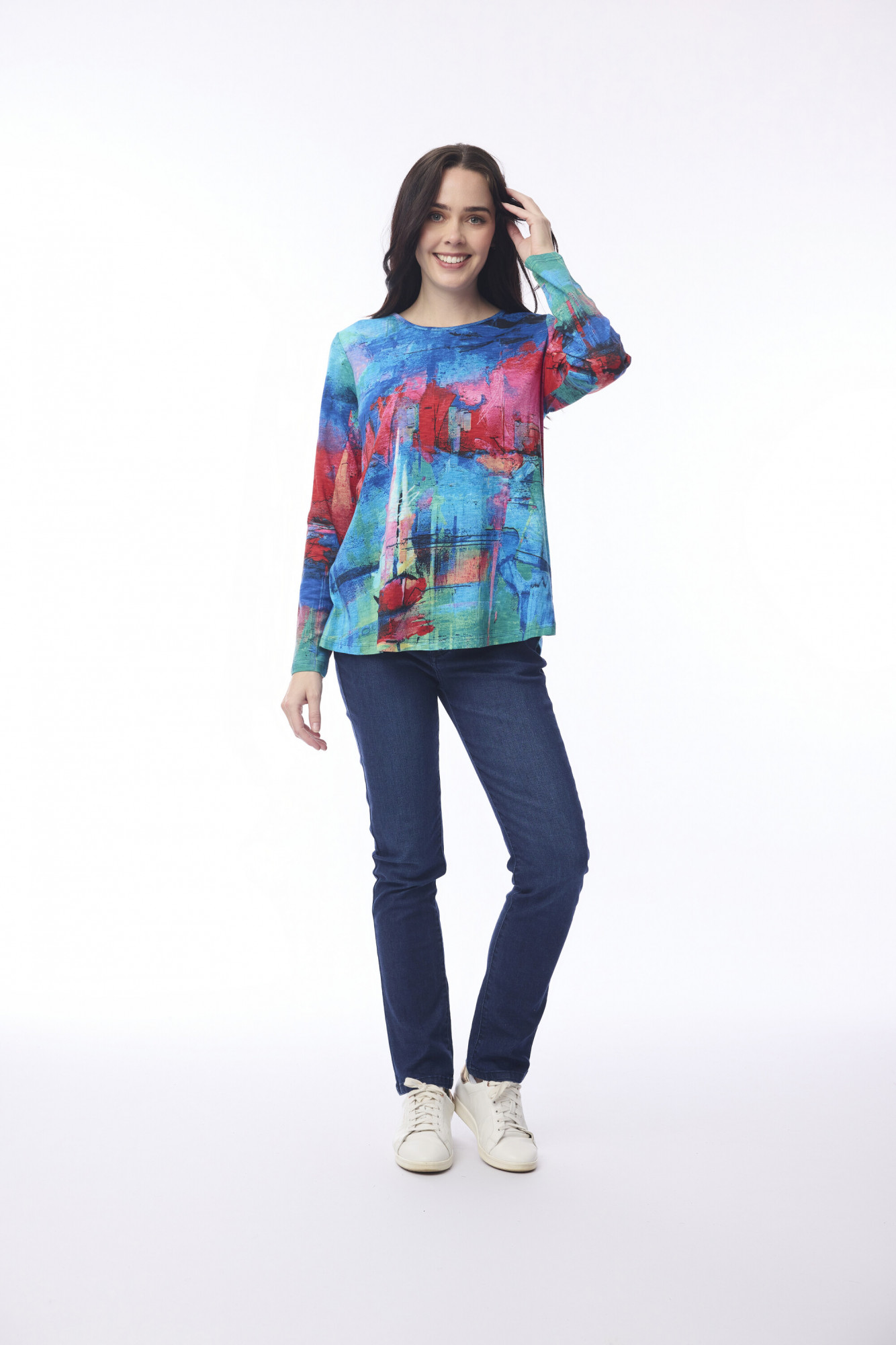 This crew neck t-shirt is the perfect basic to add some fun into your daily wardrobe. Featuring a crew neckline, long sleeves, and fun prints in 100% organic cotton, this t-shirt will keep you feeling comfortable and stylish.