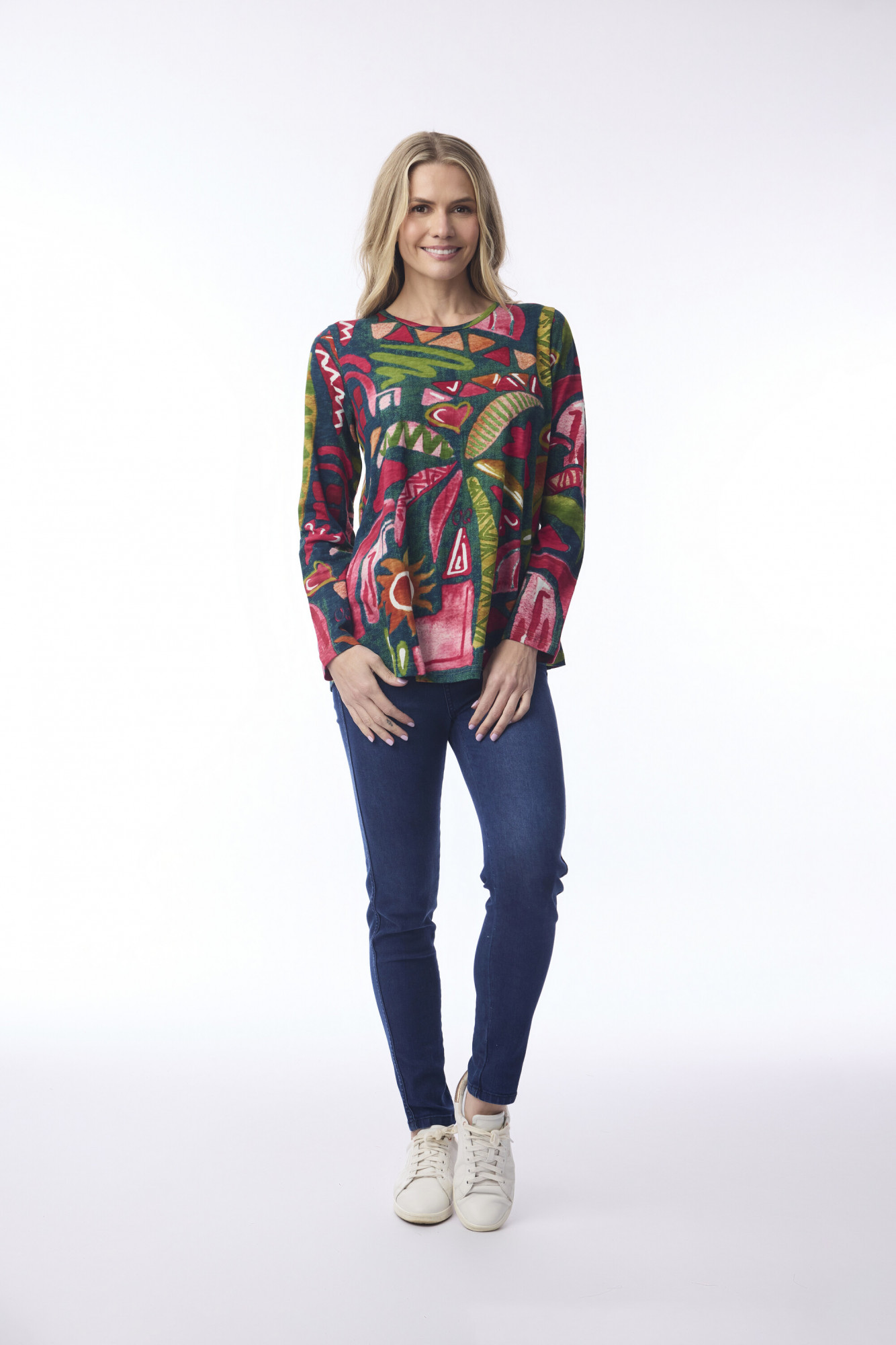 This crew neck t-shirt is the perfect basic to add some fun into your daily wardrobe. Featuring a crew neckline, long sleeves, and fun prints in 100% organic cotton, this t-shirt will keep you feeling comfortable and stylish.