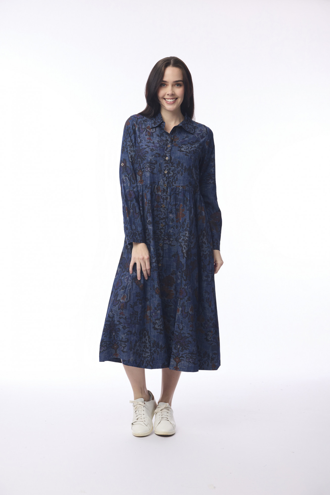 The Tabriz Collar Maxi Dress is a timeless silhouette designed to suit any occasion. Featuring a button-through front, full sleeves, and a classic collared neckline, it offers a refined yet effortless look. A tiered skirt and practical pockets add feminine charm and everyday functionality. Crafted from 100% organic cotton in beautiful colors and prints, this dress combines style, comfort, and sustainability in one elegant piece.